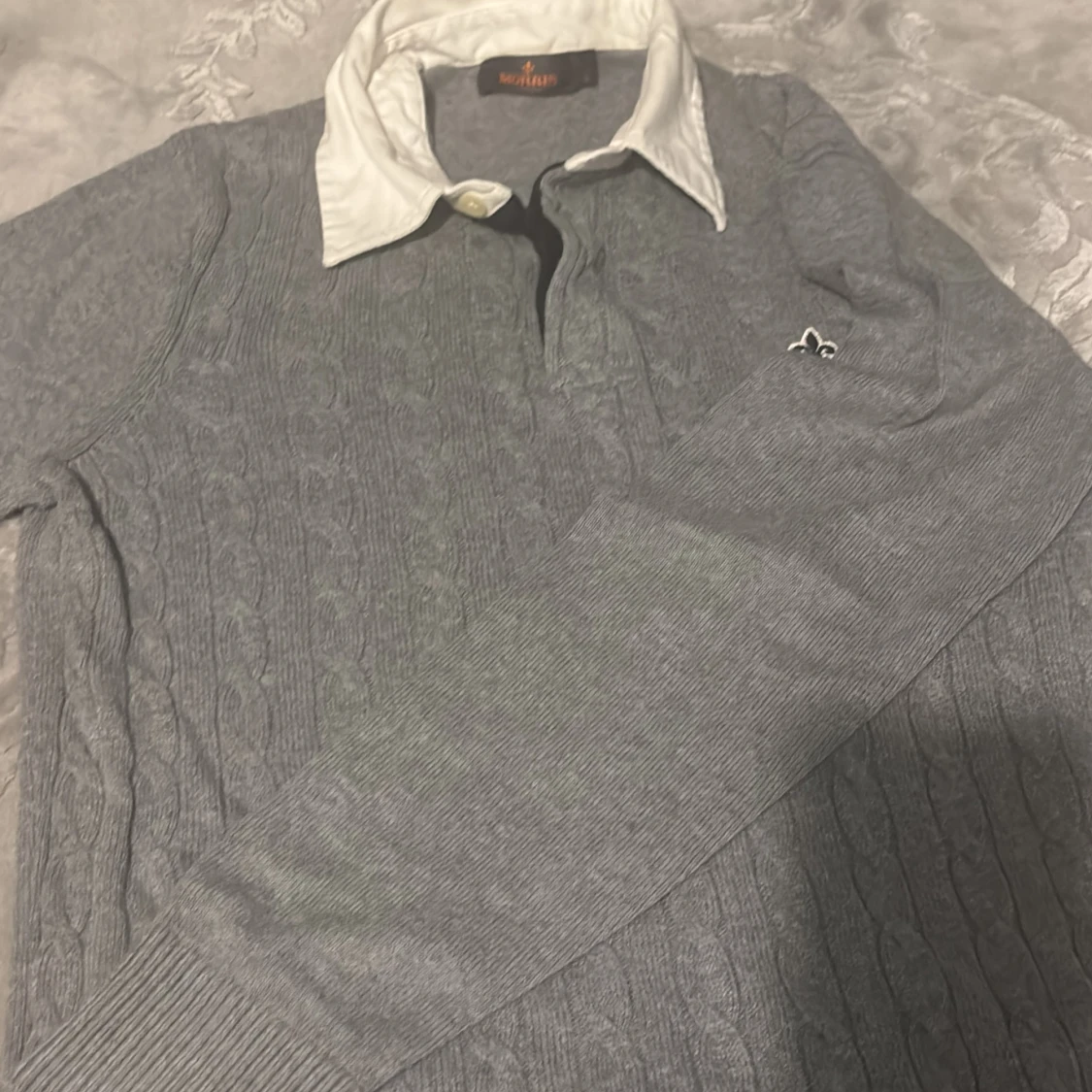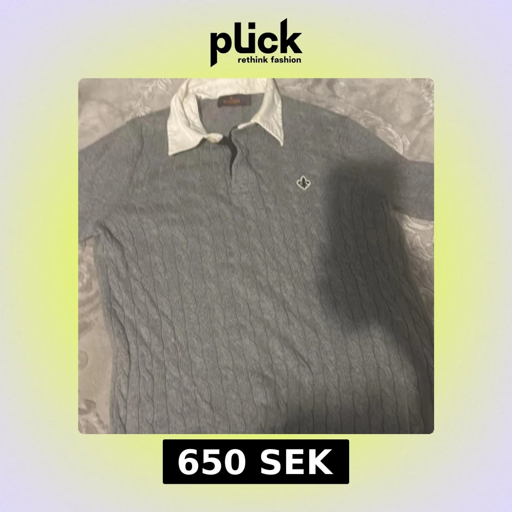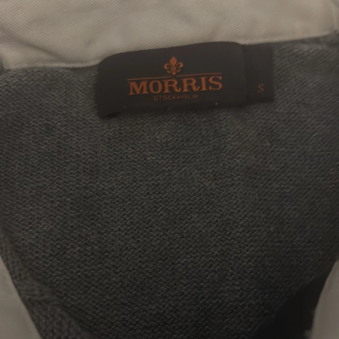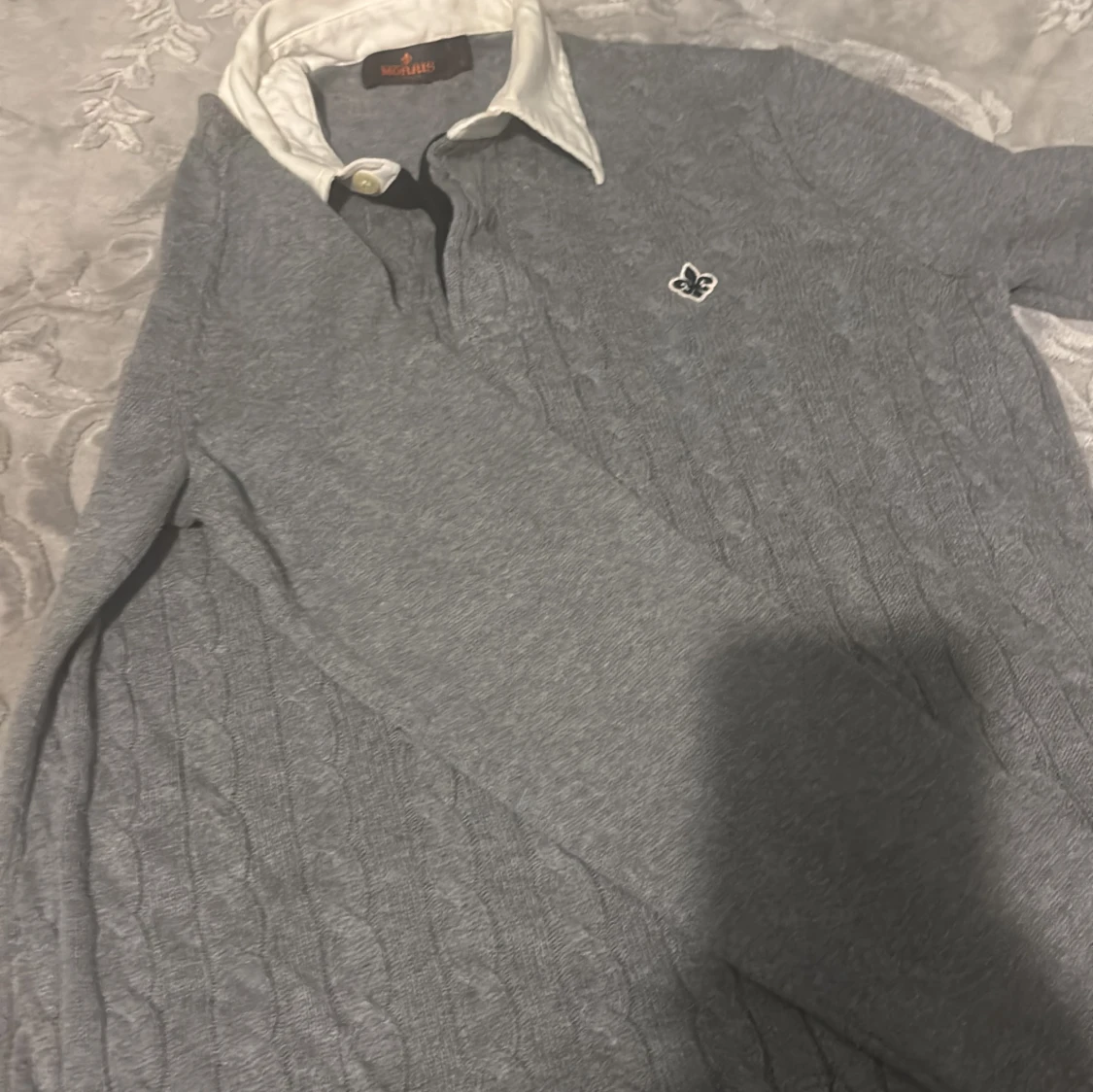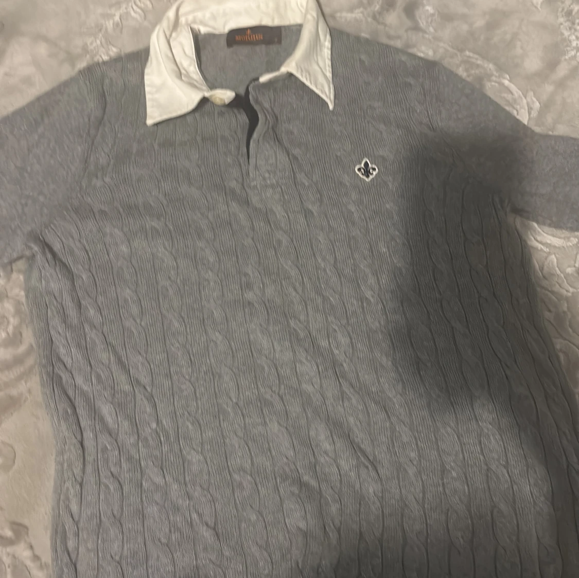 Snygg grå kabelstickad pikétröja från Morris med vit krage och broderad logga på bröstet. Tröjan har lång ärm och klassisk pikéknäppning framtill. Perfekt för en preppy look och passar till både jeans och chinos.