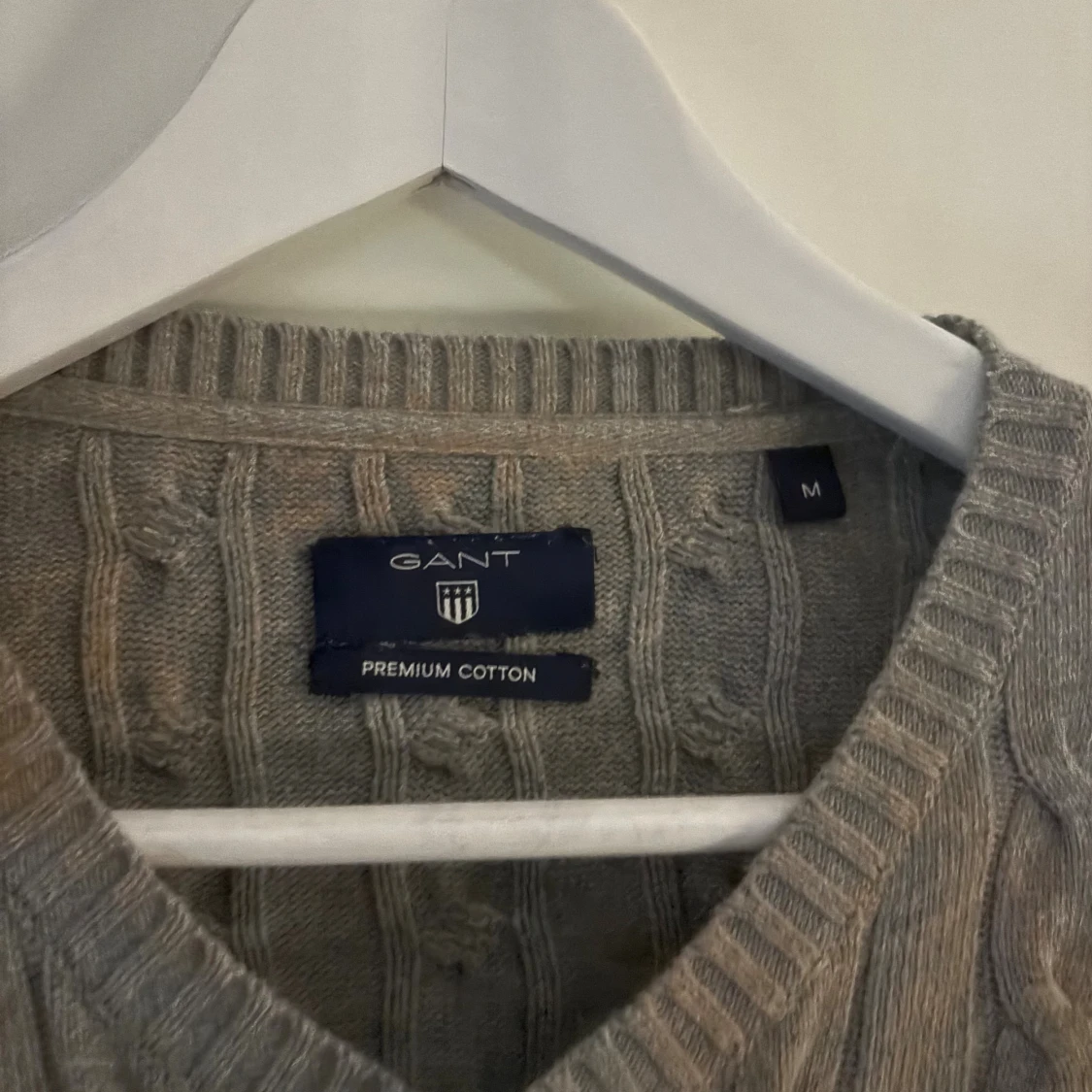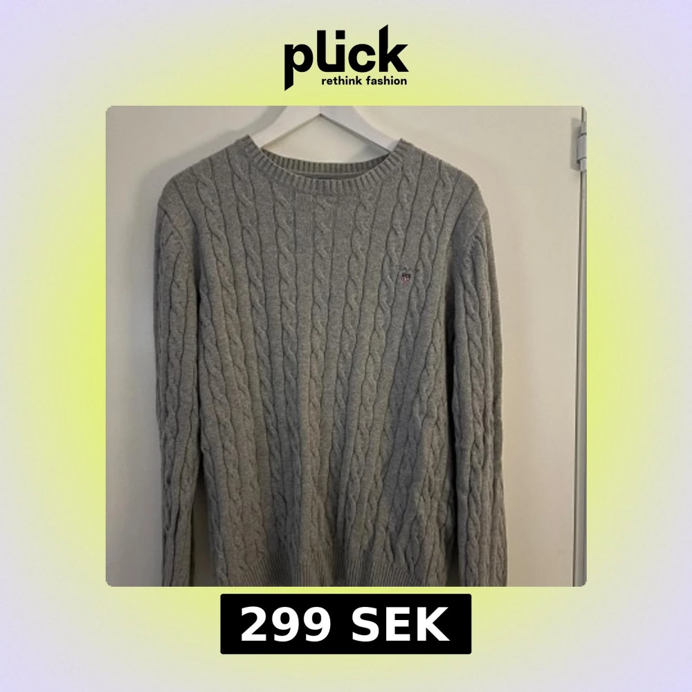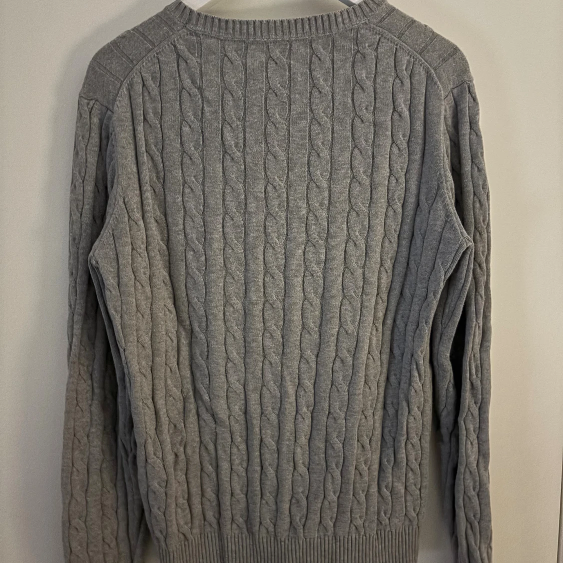 Kabelstickad grå tröja från Gant i premium bomull. Klassisk rund halsringning, ribbade muddar och diskret Gant-logo på bröstet. Perfekt för lager-på-lager och snygg till både jeans och chinos. Storlek M men sitter mer som S!