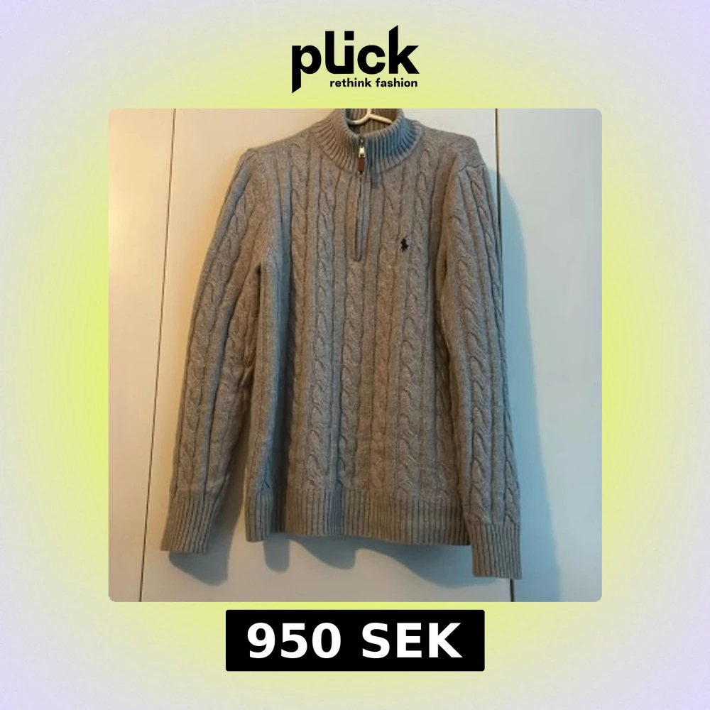 Säljer en stilren grå kabelstickad tröja från Polo Ralph Lauren. Tröjan har en halv dragkedja. Billigare pris med snabb affär! Sold!