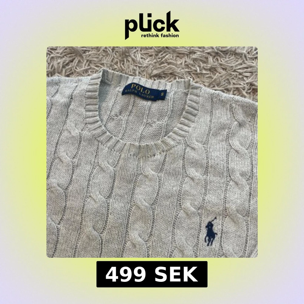 Snygg ljusgrå kabelstickad tröja från Polo Ralph Lauren. Tröjan har en broderad marinblå logga på bröstet. Perfekt för en avslappnad och stilren look. Storlek S men mått kan såklart skickas vid osäkerhet. Använd men inga märkvärdiga defekter. Postas antigen samma dag som köp eller dagen därpå🙌💯