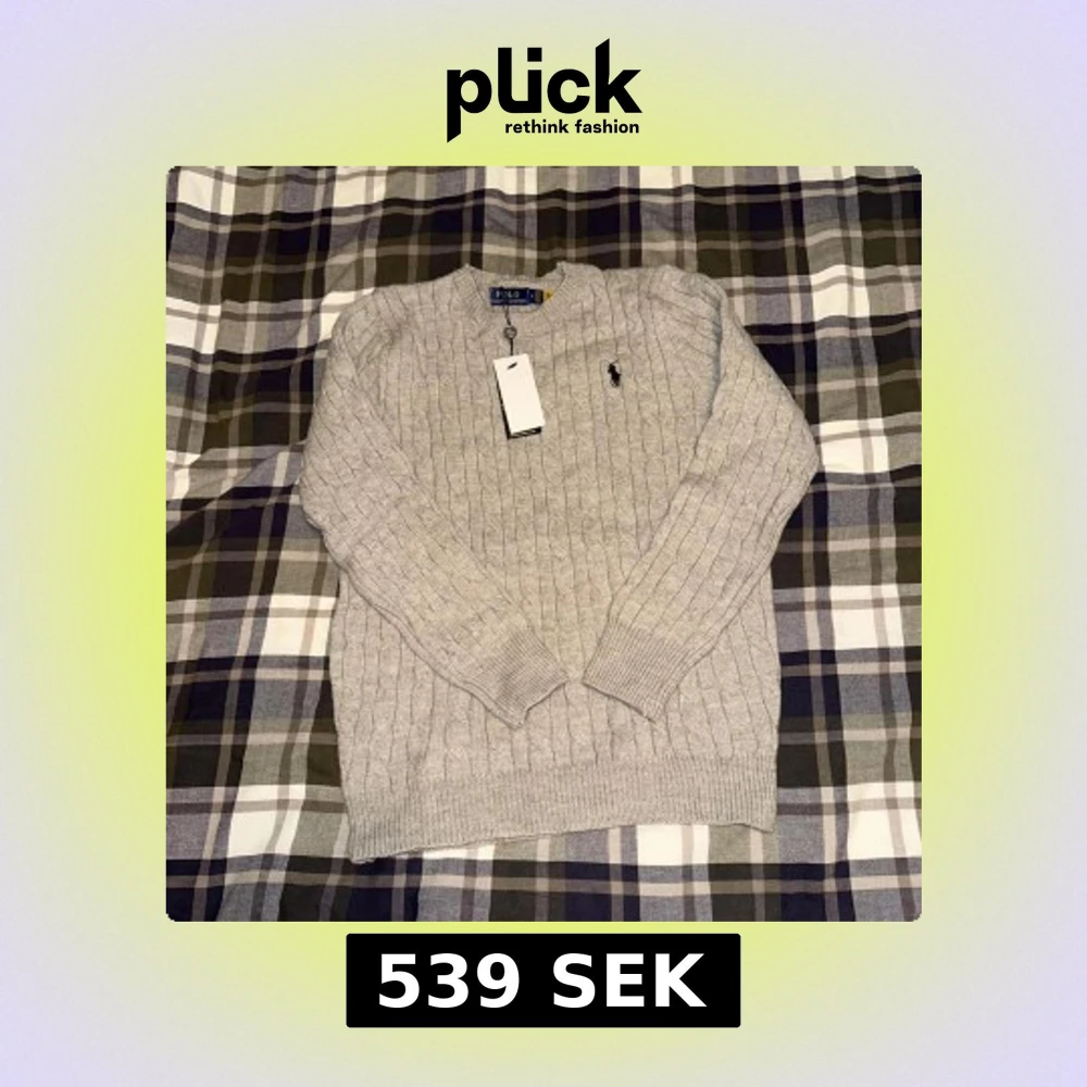 Kabelstickad grå tröja från Polo Ralph Lauren med klassisk rund halsringning och svart broderad logga på bröstet. Tröjan har ribbade muddar och är långärmad, perfekt för lager-på-lager under kyliga dagar.