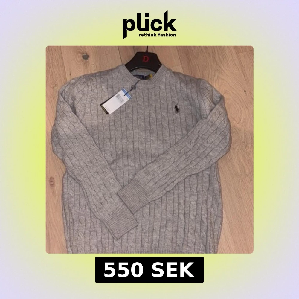 Kabelstickad grå tröja från Polo Ralph Lauren med klassisk rund halsringning och broderad svart logga på bröstet. Tröjan är i mjuk bomull och har ribbade muddar vid ärmslut och nederkant. Perfekt för lager-på-lager och snygg till jeans.