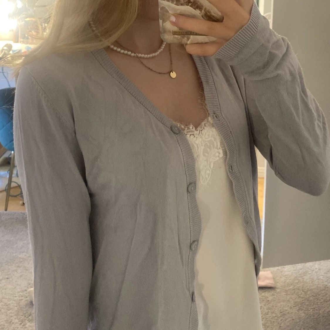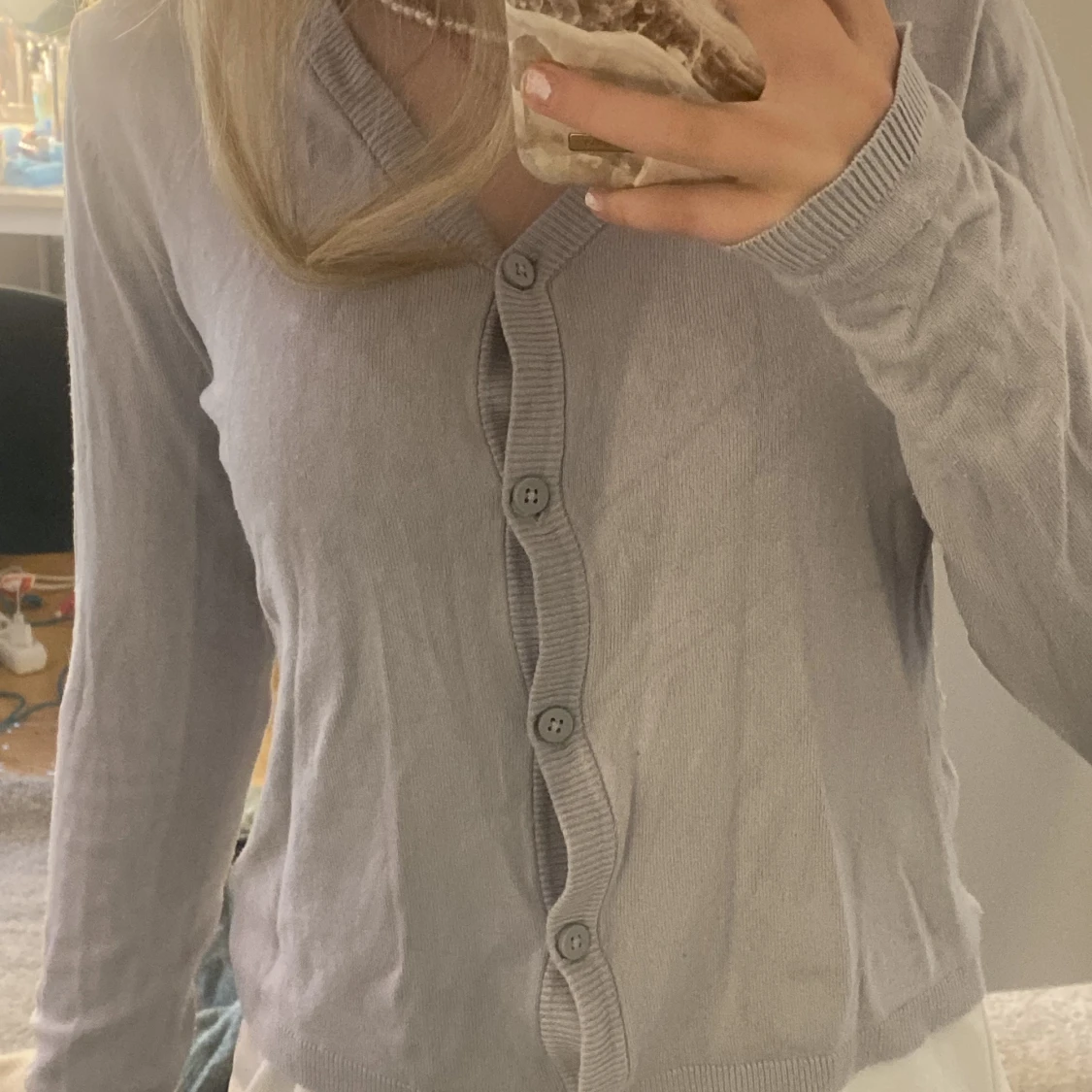 En skön grå kofta med knappar ner till💘 Perfekt för kalla väder och storleken 158