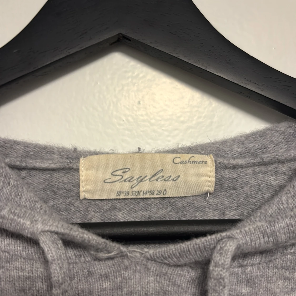 Säljer en supermjuk och stilren grå hoodie från Sayless i 100% kashmir. Perfekt för alla årstider med sin bekväma passform och klassiska design. Den har en justerbar huva och ribbade muddar för extra komfort. Tveka inte med att ställa frågor! Priset är inte hugget i sten!