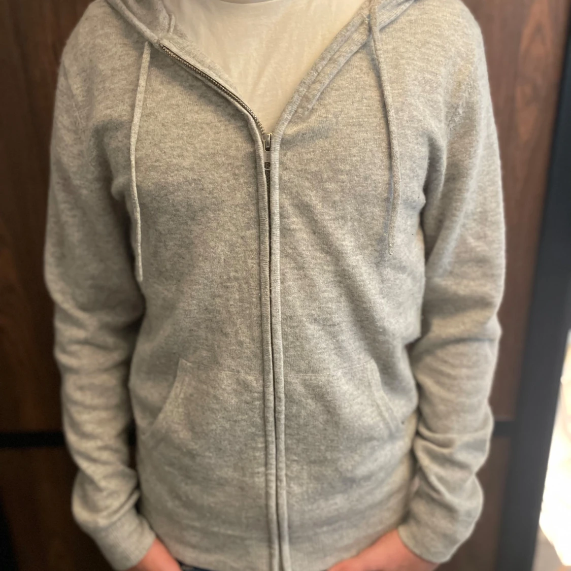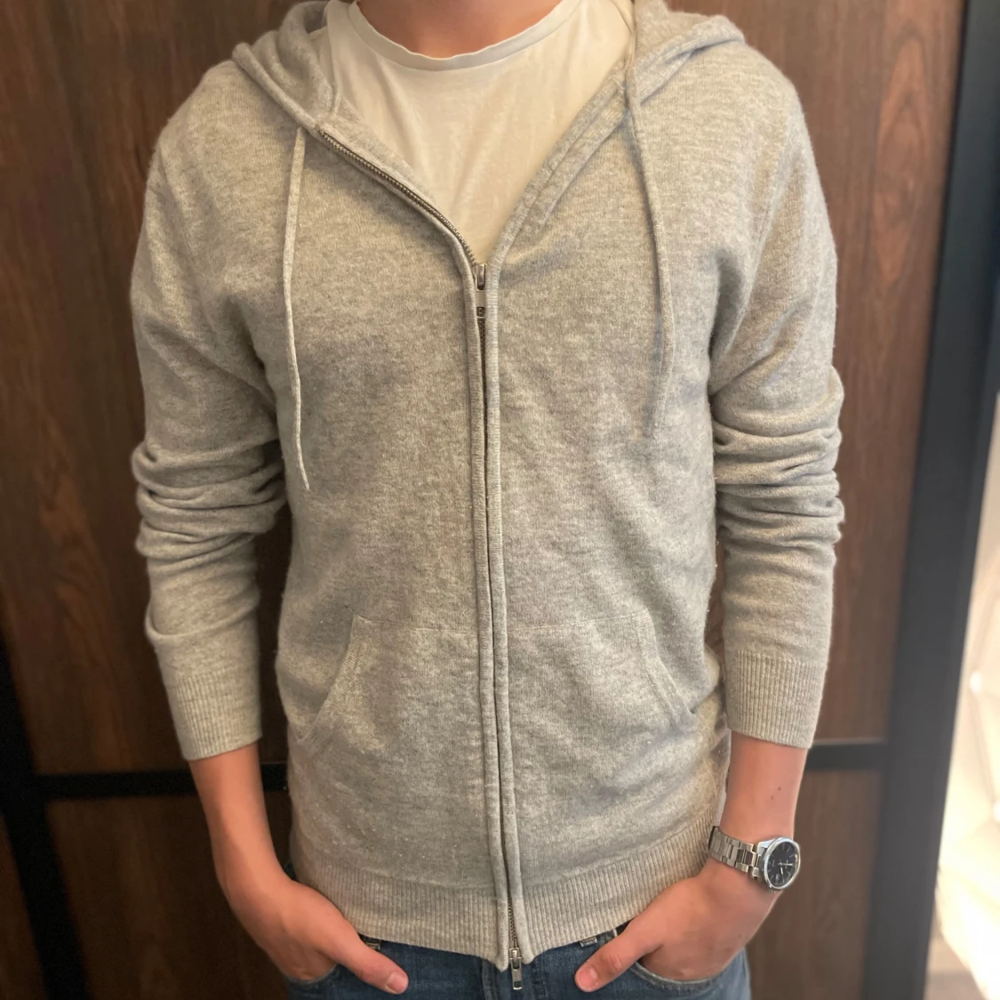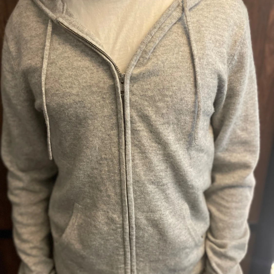 Säljer en stilren grå hoodie i mjuk kashmir från John Henric. Tröjan har dragkedja och långa ärmar med ribbade muddar. Perfekt för en avslappnad och bekväm stil. 🧥