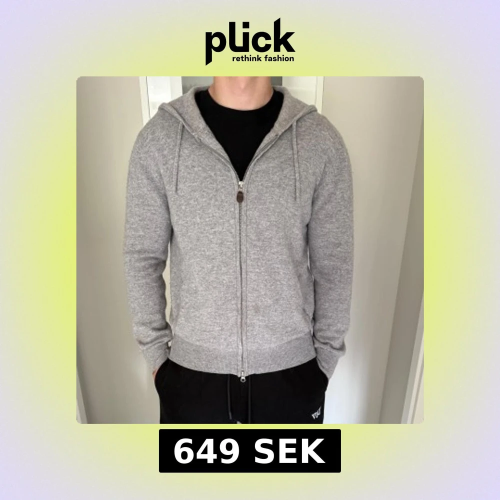 Mjuk och lyxig grå hoodie från Sayless i kashmir. Tröjan har dragkedja framtill, huva med snörning och ribbade muddar. Perfekt för dig som vill ha en stilren och bekväm look med premiumkänsla. Storlek M passar någon som är 175-185. Mycket bra skick, mitt pris 649:- nypris 999:-