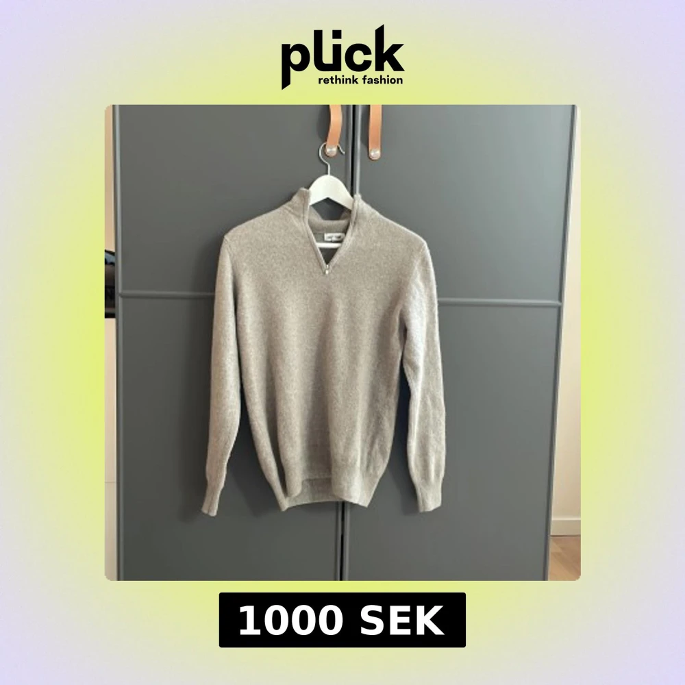 Säljer en stilren grå kashmirtröja från Soft Goat med dragkedja vid halsen. Tröjan har långa ärmar och en ribbad krage samt muddar. Perfekt för kyliga dagar!