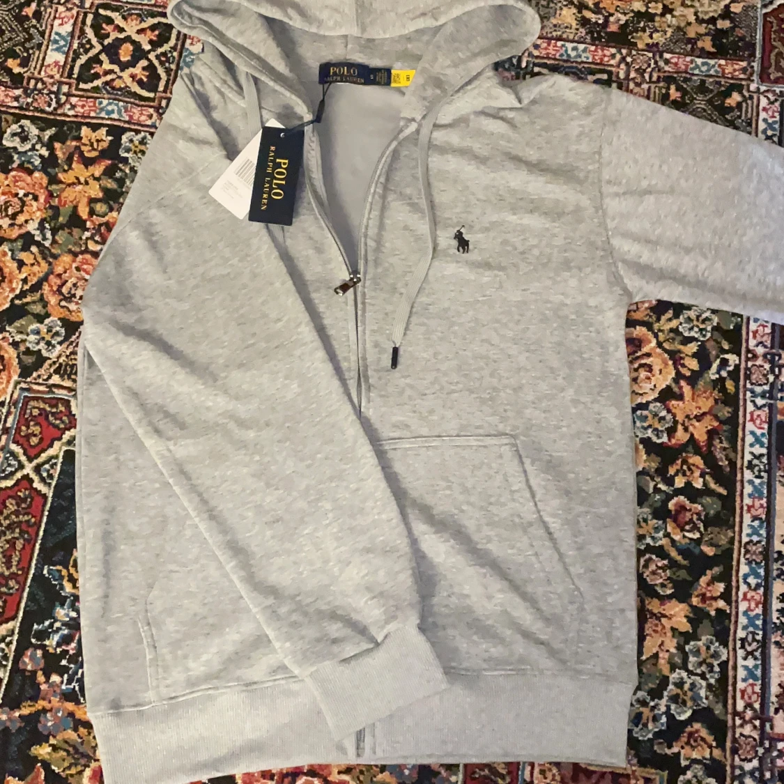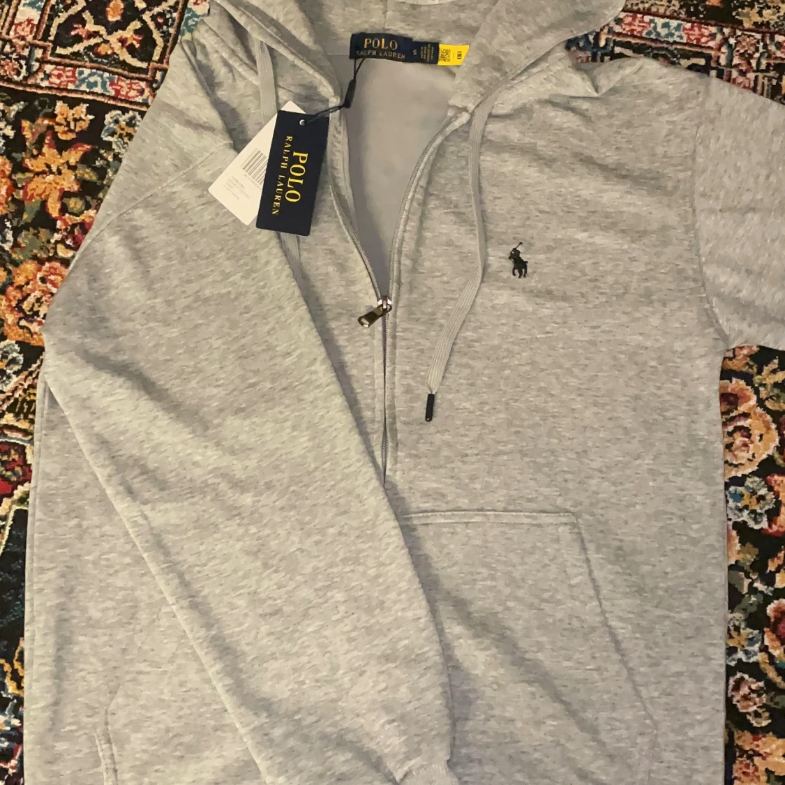 Snygg ljusgrå hoodie från Polo Ralph Lauren med klassisk broderad logga på bröstet. Tröjan har huva med snörning, half zip-dragkedja och en stor magficka. Perfekt för chill dagar och enkel att matcha med jeans eller joggers.