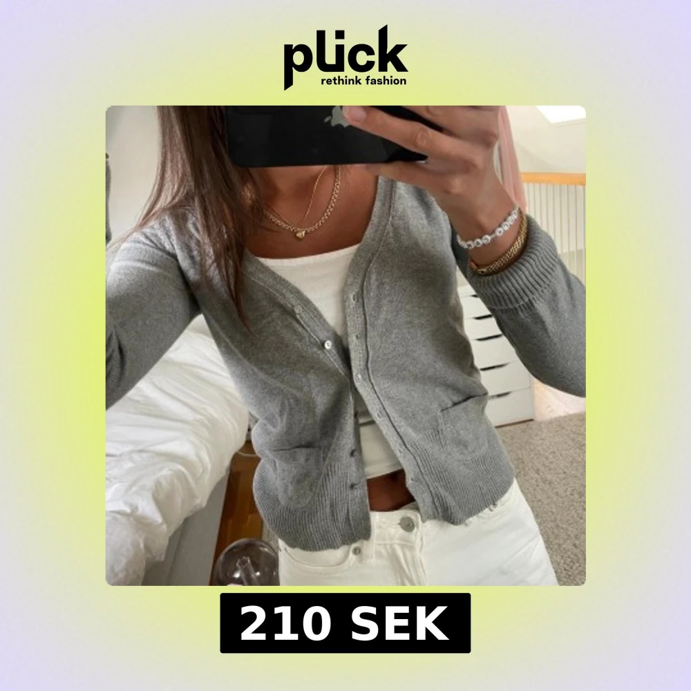 Snygg grå kofta med v-ringning och knappar hela vägen framtill. Tröjan har två praktiska fickor och ribbade muddar vid ärmslut och nederkant. Perfekt att slänga över en topp för en chill look. perfekt inför höst och vinter