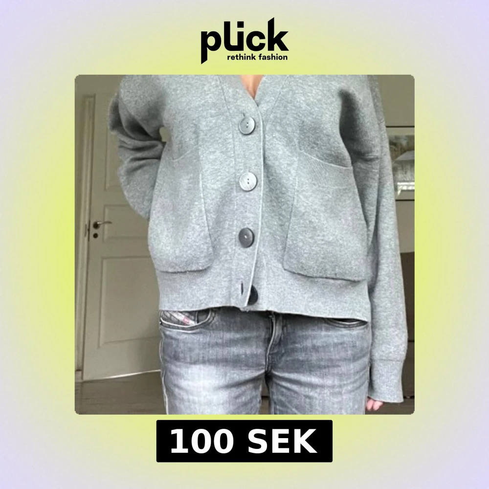 Mysig och snygg grå kofta med stora knappar framtill, passar till allt! Den är i bra skick och säljs för endast 100 kr!!