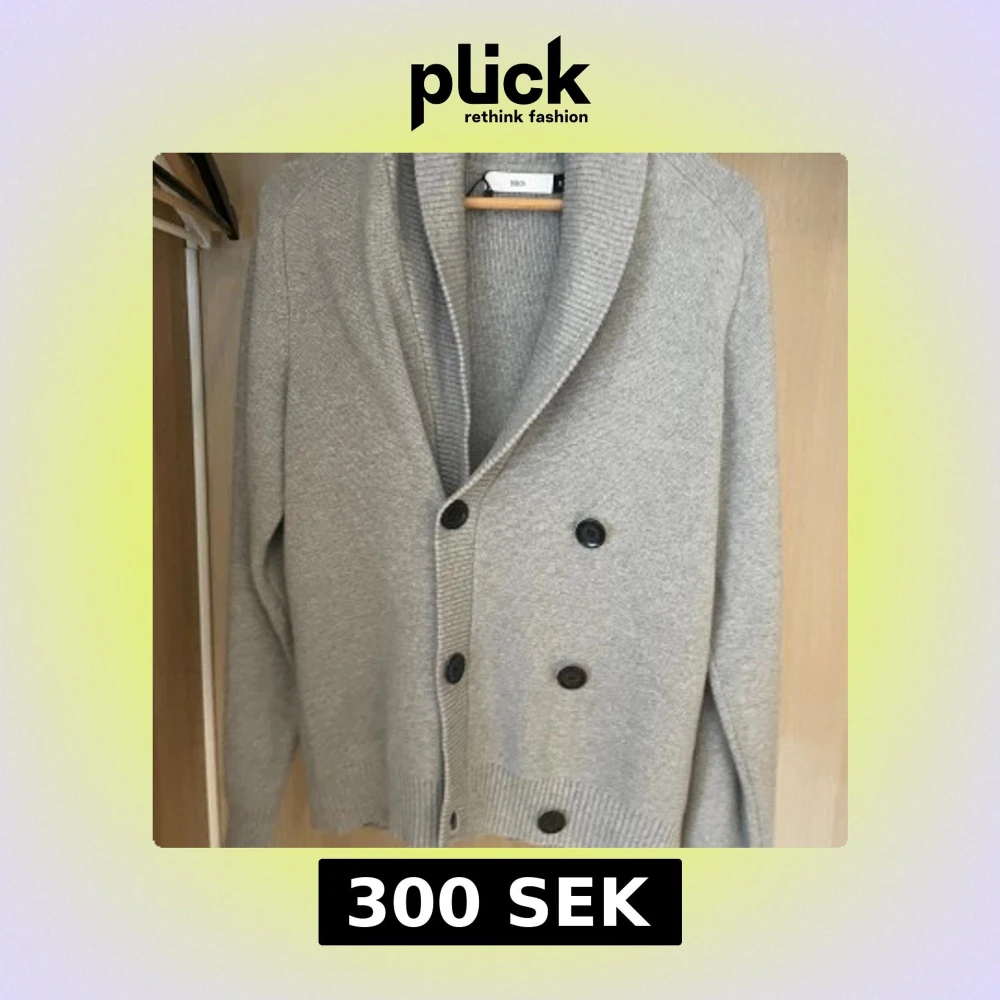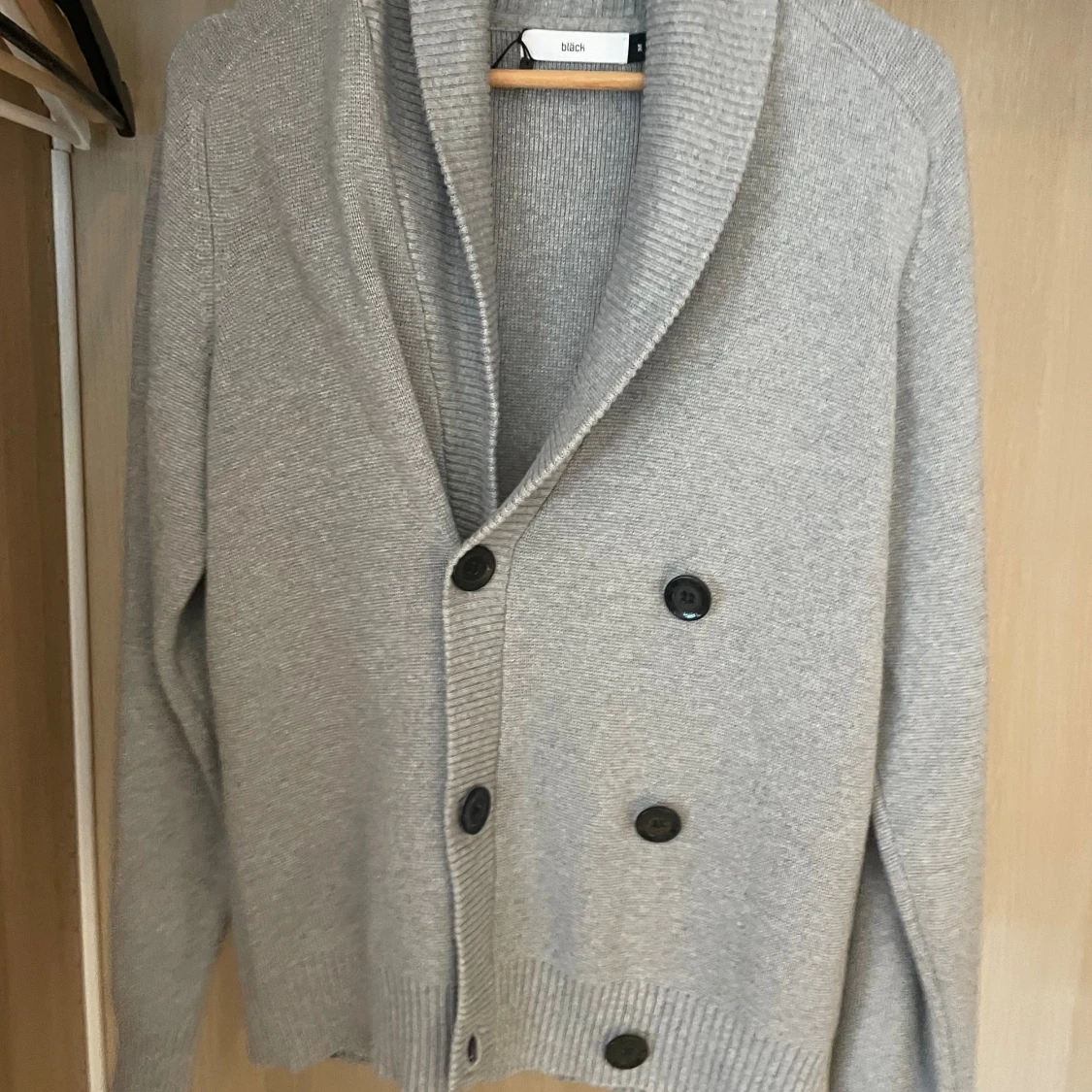 Snygg grå kofta från Bläck med dubbelknäppning och bred krage. Koftan är stickad i mjukt material och har långa ärmar samt ribbade muddar. Perfekt för lager-på-lager och chill dagar.