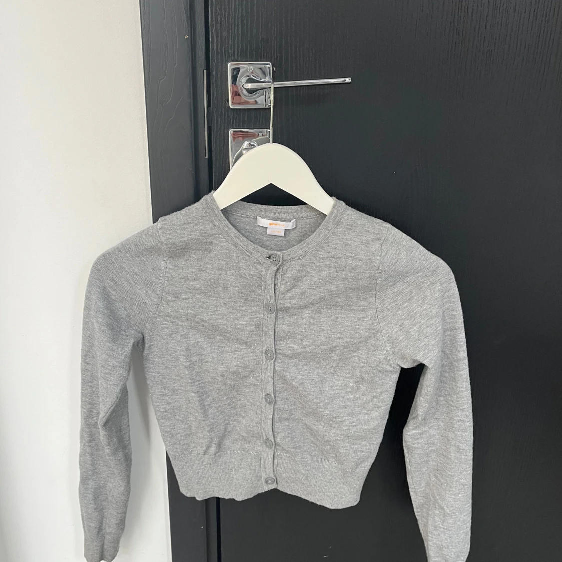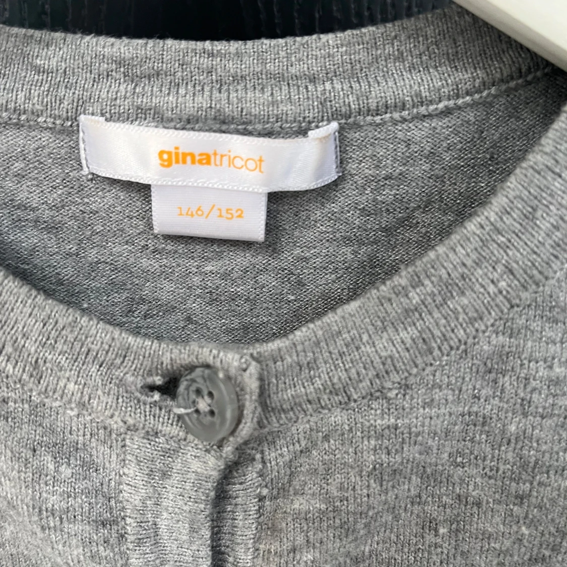 Säljer en stilren grå kofta från Gina Tricot. Koftan har långa ärmar och knappar framtill. Perfekt för lager-på-lager under kyligare dagar. 🩶