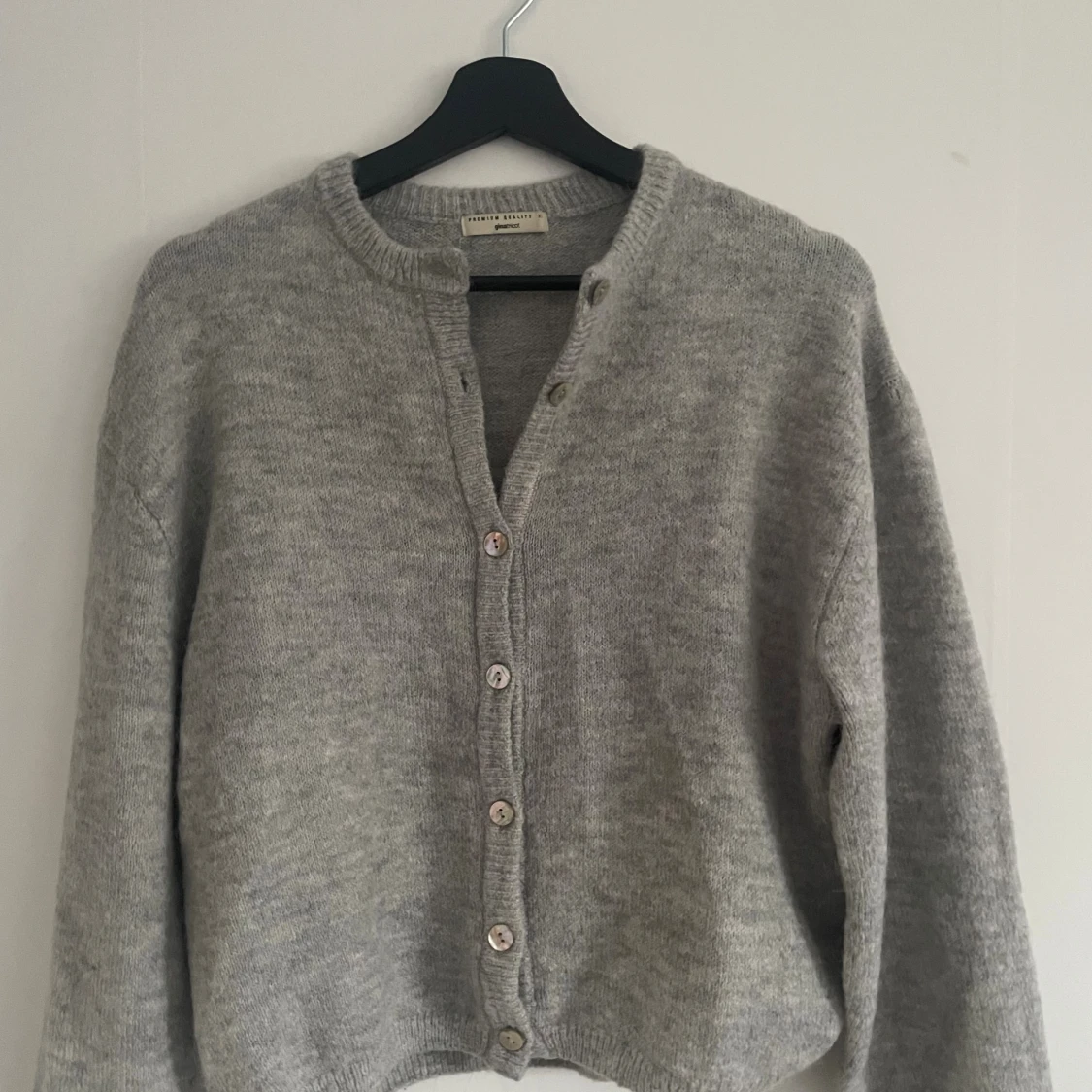 Mysig grå kofta från Gina Tricot i stickad ullmix.