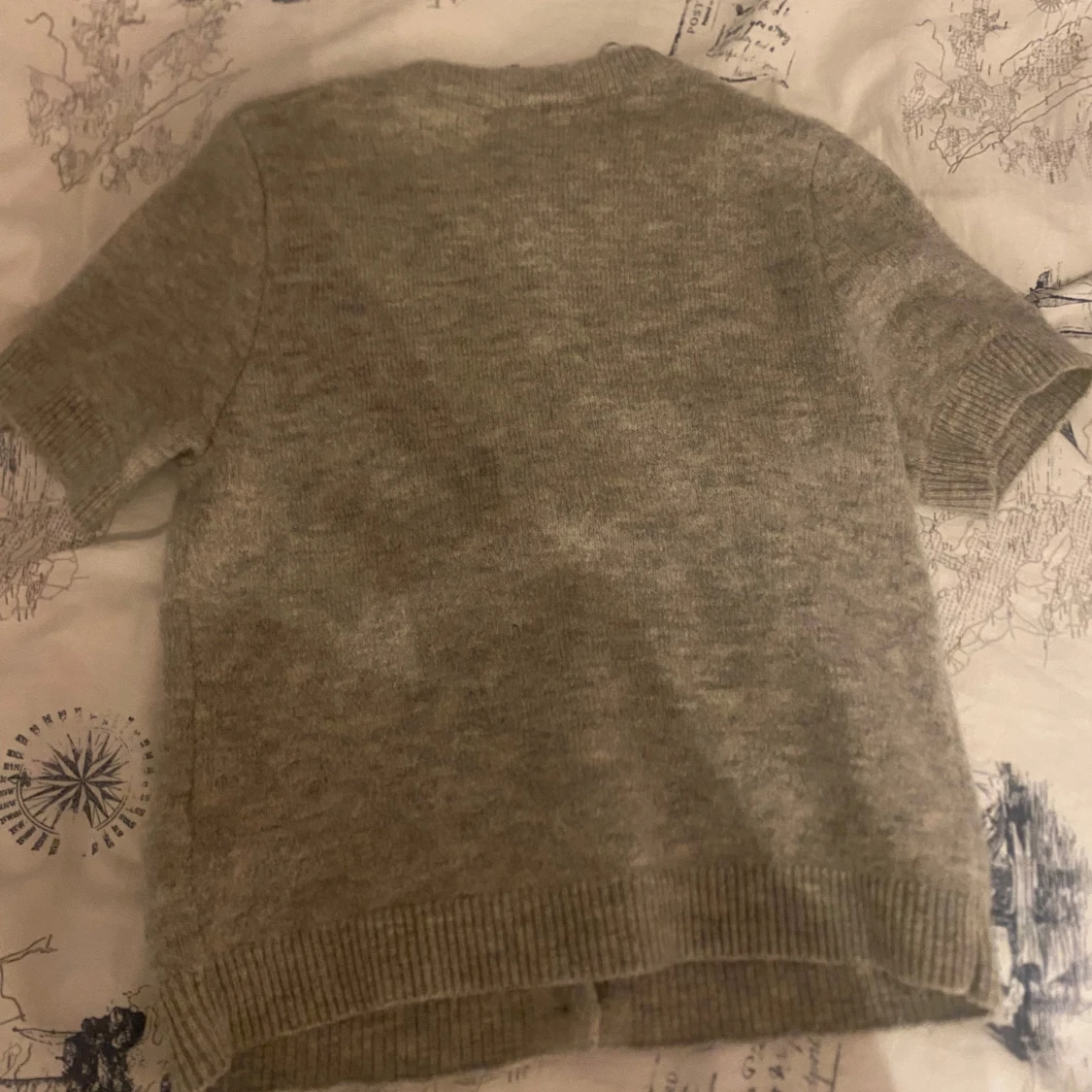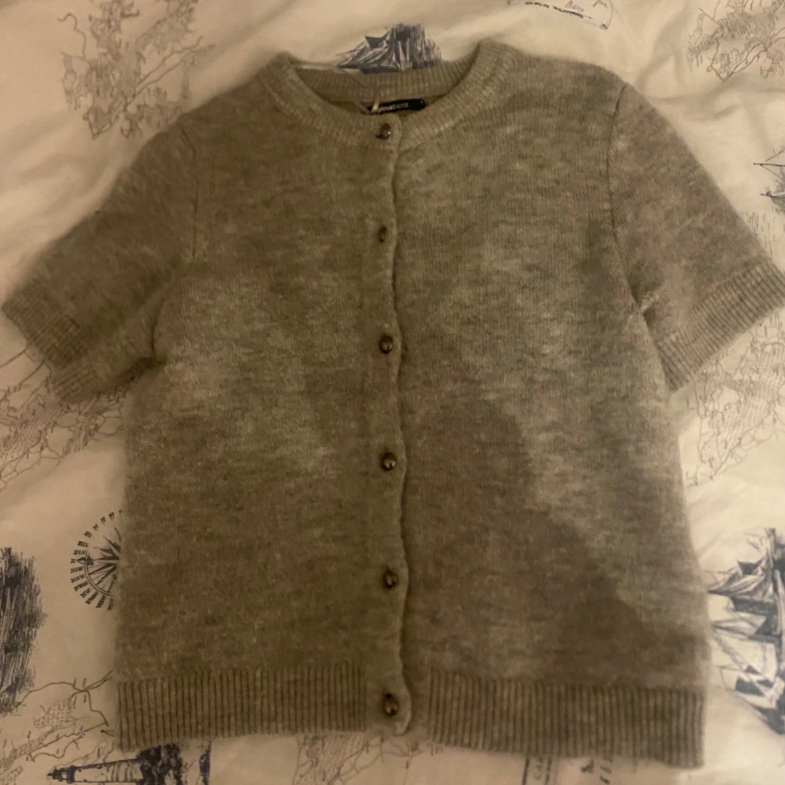 Säljer en stilren grå kofta från Gina tricot. Koftan har korta ärmar och knappar framtill. Perfekt för lager-på-lager under kyligare dagar. 🧥