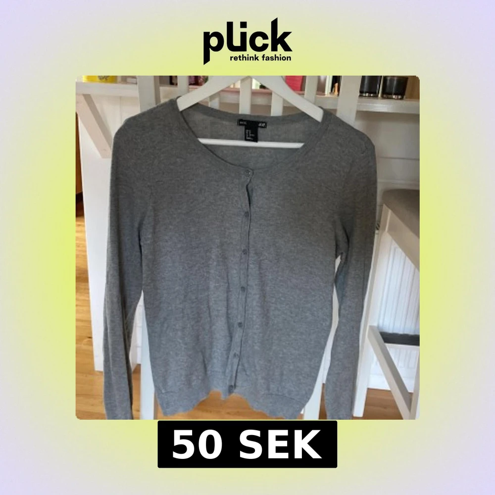 En enkel och stilren grå kofta från H&M Basic i storlek M. Koftan har rund halsringning, långa ärmar och knäppning framtill med små knappar. Perfekt att slänga över en t-shirt eller linne för en chill look.