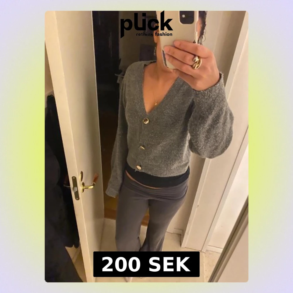 Mysig grå kofta från H&M i storlek M. Koftan är stickad och har en croppad passform med v-ringad hals. Enkel och stilren design som funkar till många outfits.