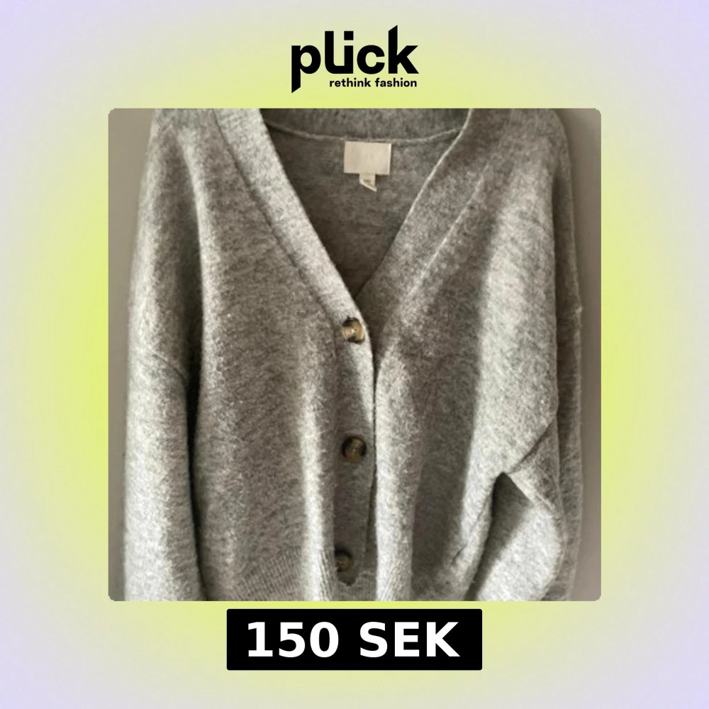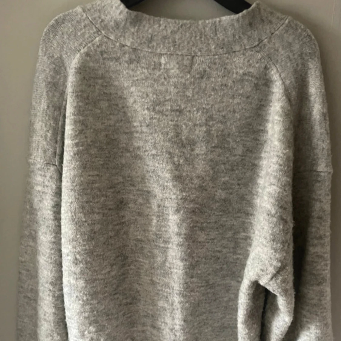 Mysig grå kofta från H&M med v-ringning och tre stora knappar framtill. Koftan är stickad och har en loose passform med långa ärmar. Perfekt för lager-på-lager och chill dagar. Enkel och stilren design som funkar till det mesta.