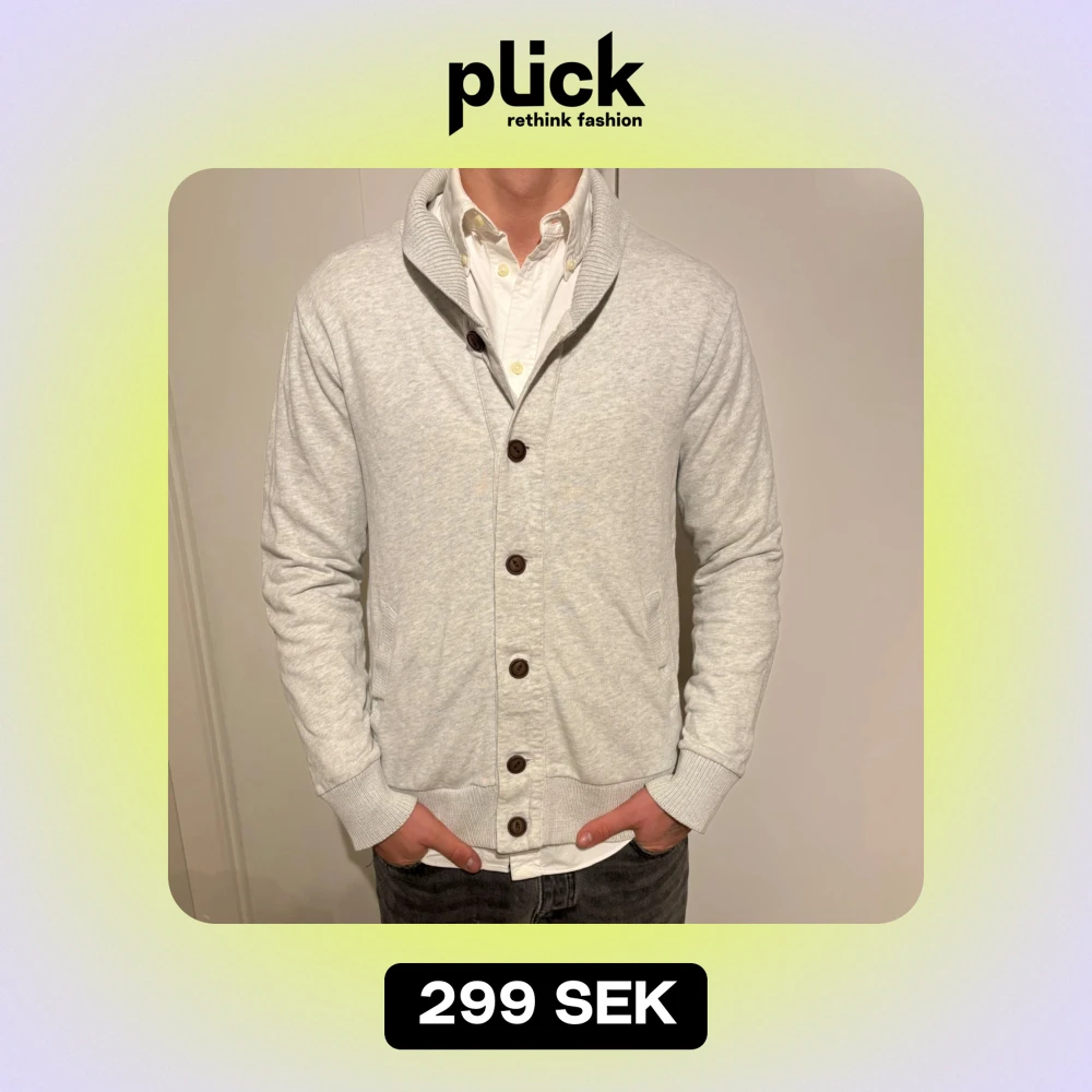 Grå kofta från märket H&M, storlek S. Bra använt skick, inga defekter. Modell på bild är 182/67kg. Hör av dig vid eventuella frågor! Mvh CAVI