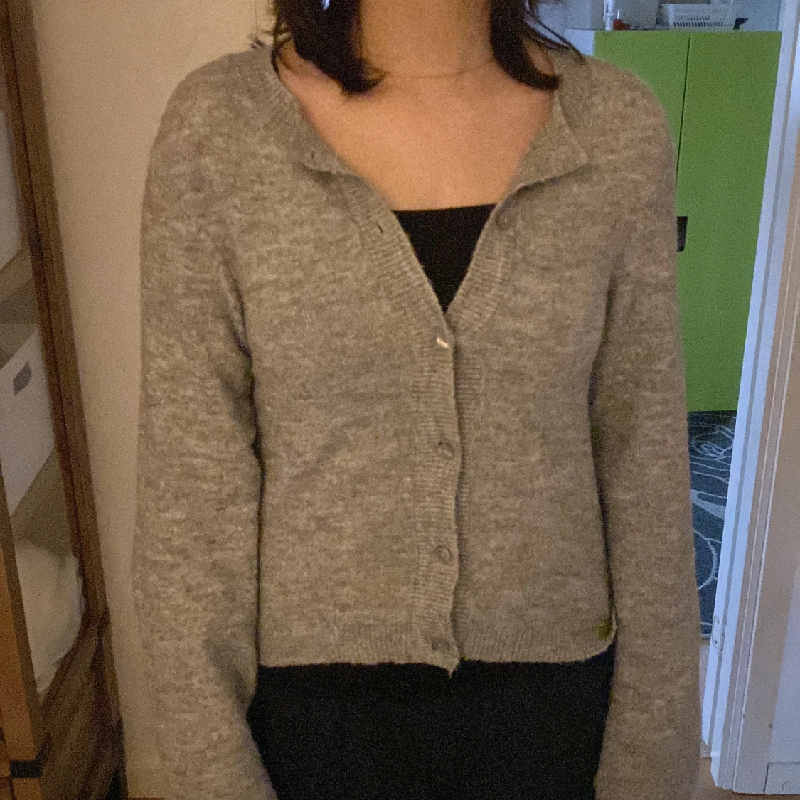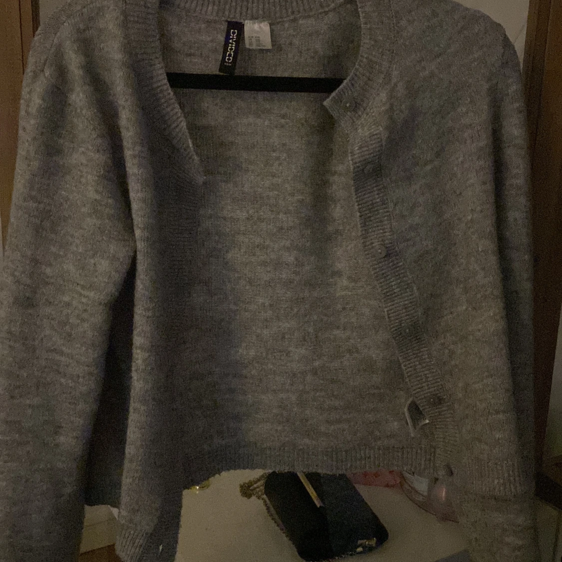 Mysig grå stickad kofta från hm med knappar framtill. Klassisk modell med lång ärm och ribbade muddar. Perfekt att slänga över en topp för en chill look. Enkel att matcha med det mesta och superbekväm.