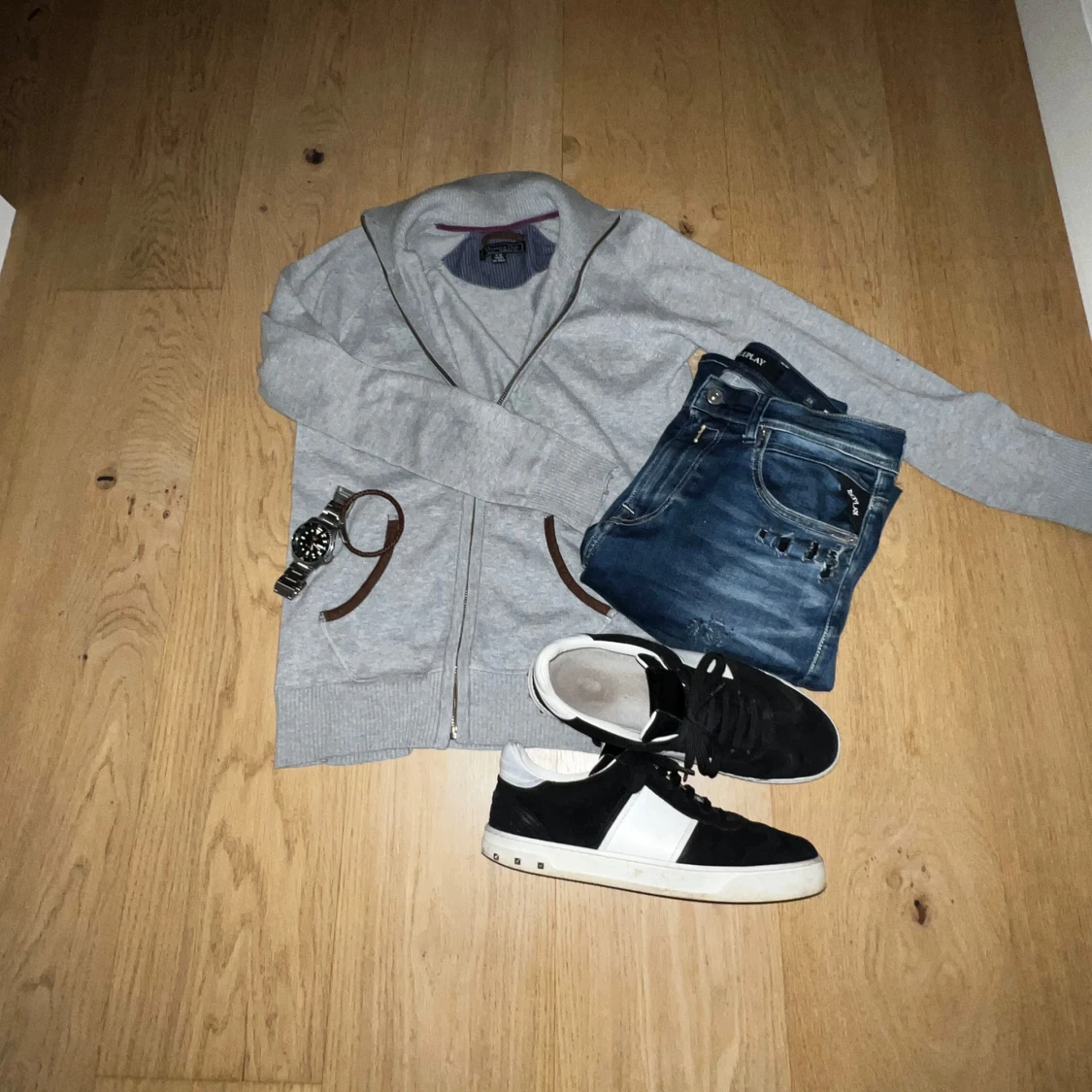 Säljer en stilren grå kofta från Massimo Dutti i mycket bra skick. Den har en dragkedja framtill och två fickor med bruna detaljer. Perfekt för höst och vår, och passar både till vardags och lite finare tillfällen. Storleken är som XS och passar någon runt 160-170, den har en normal passform.