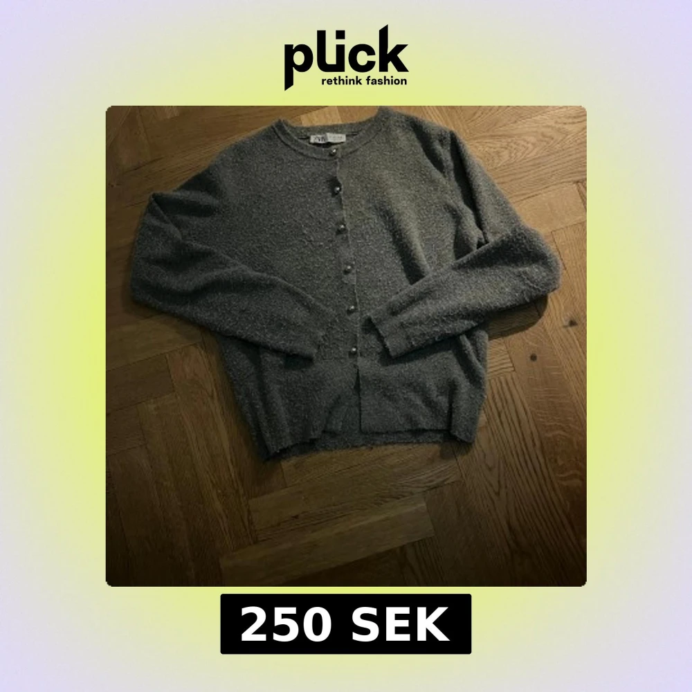 Säljer en stilren grå kofta från Zara med knappar framtill. Perfekt för kyligare dagar och lätt att matcha med olika outfits. Koftan har långa ärmar och en mjuk textur.