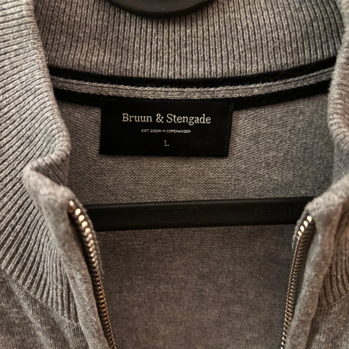 Snygg grå kofta från Bruun & Stengade i storlek L. Koftan har hel dragkedja framtill, ribbad krage och muddar. Perfekt för lager-på-lager och enkel att matcha med andra plagg. Mjuk och skön känsla, passar till många olika stilar. Knappt använd då jag har en del liknande tröjor. Hör av er vid intresse eller fler bilder!☀️