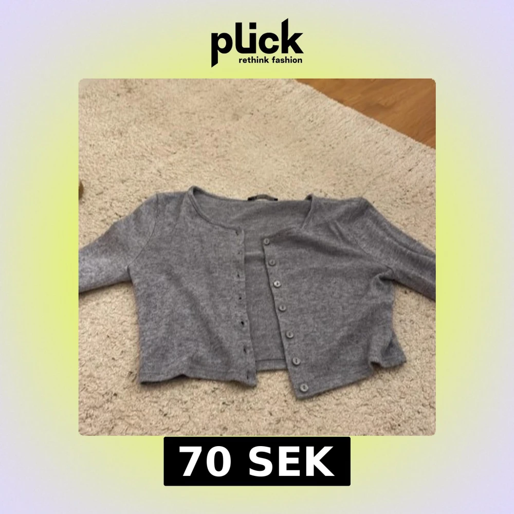 Säljer en stilren grå kofta med knappar framtill. Den är croppad och har långa ärmar, perfekt för lager-på-lager-stil. Koftan är mjuk och bekväm, idealisk för både vardag och mysiga stunder.
