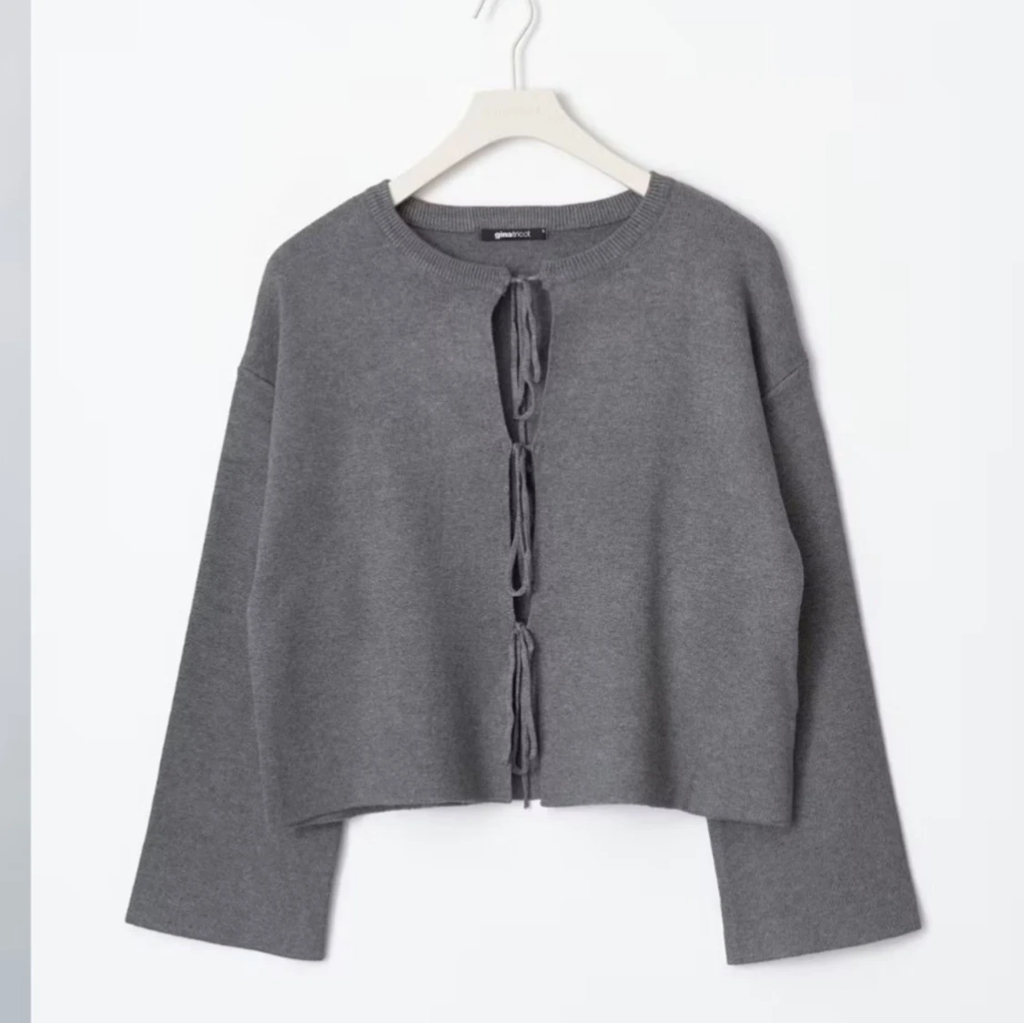 Säljer en grå kofta från Gina Tricot med knyt framtill.