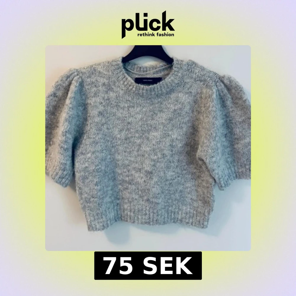 Supermysig grå stickad tröja från Vero Moda med korta puffärmar, kort modell.