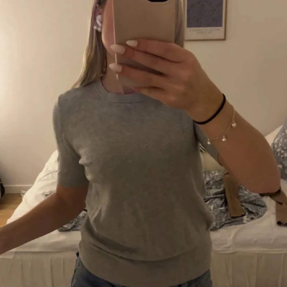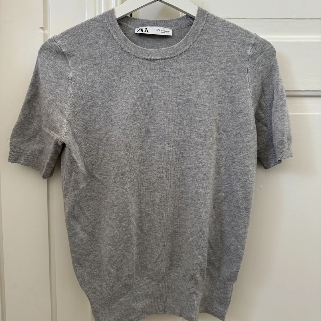 en grå kortärmad tröja från Zara. Tröjan har en rund halsringning och är tillverkad i ett mjukt material💞💞 aldrig använd!