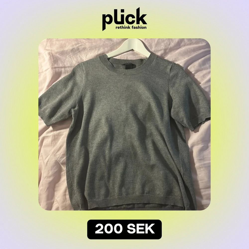 Säljer en stilren grå tröja i mjukt material. Perfekt för både vardag och lite finare tillfällen. Den har korta ärmar och en rund halsringning. Passar bra till jeans eller kjol för en avslappnad look.