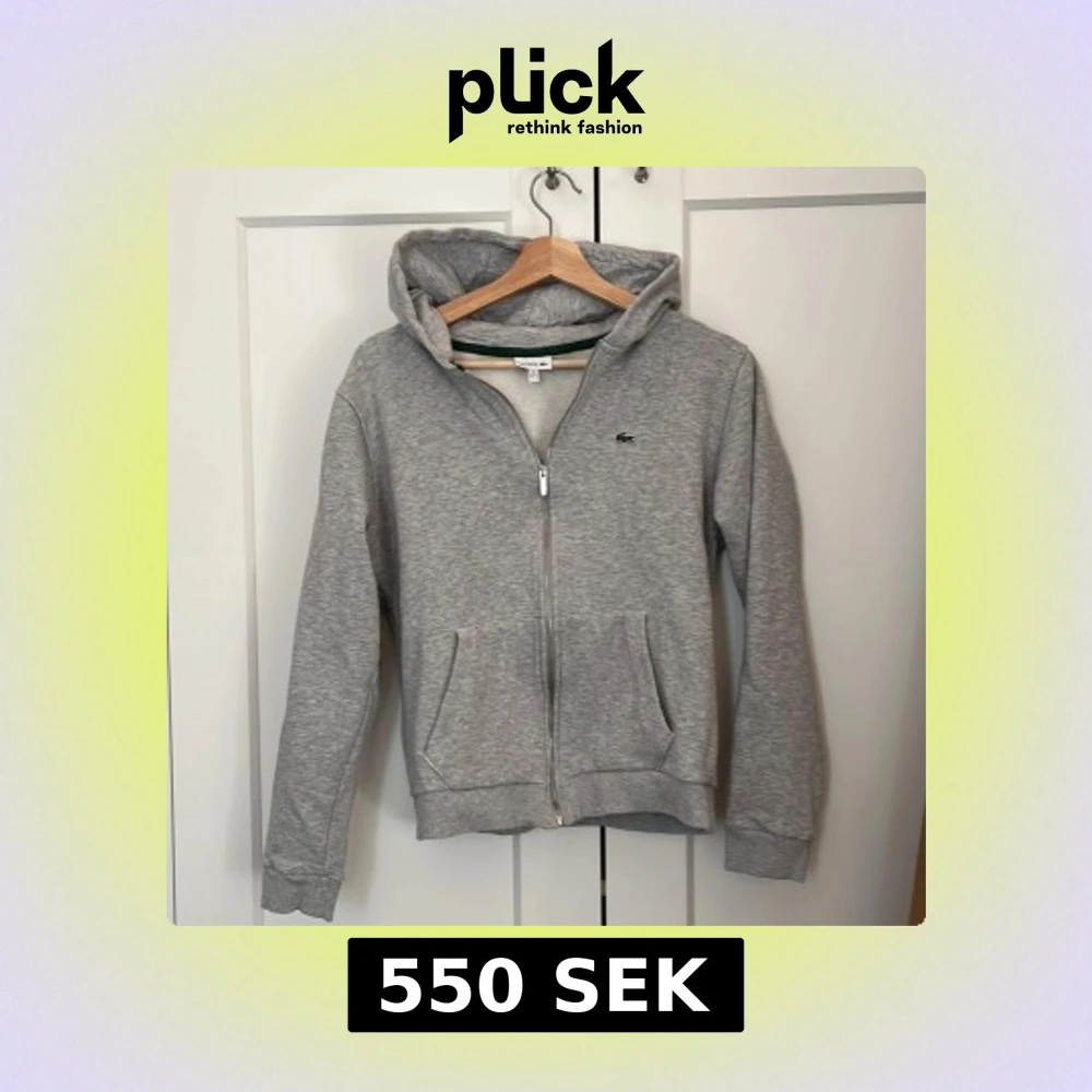 Säljer en riktig clean Lacoste zip hoodie storlek xS, helt ny skick, passar som den ska.