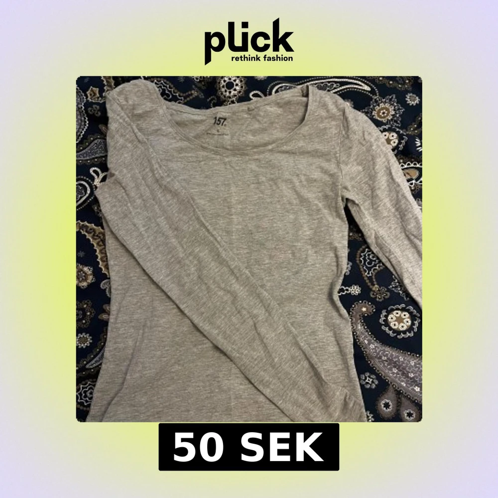 Säljer en basic grå långärmad topp från 157. Tröjan har rund halsringning och är tillverkad i mjuk bomullsblandning med lite stretch. Perfekt att styla med jeans eller kjol. Figursydd🩷