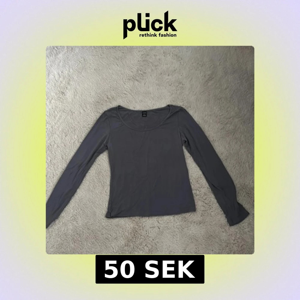 Snygg grå långärmad topp från SHEIN i storlek Petite S. Enkel och stilren design med rundad halsringning, perfekt att matcha med jeans eller kjol. Materialet känns mjukt och lätt mot huden, vilket gör den skön att bära hela dagen.