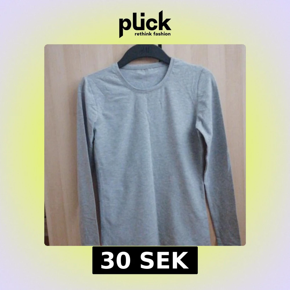 Säljer en enkel och stilren grå långärmad tröja i bomull och lycra. Perfekt för en avslappnad look. Tröjan har en rund halsringning och är tillverkad i Turkiet.
