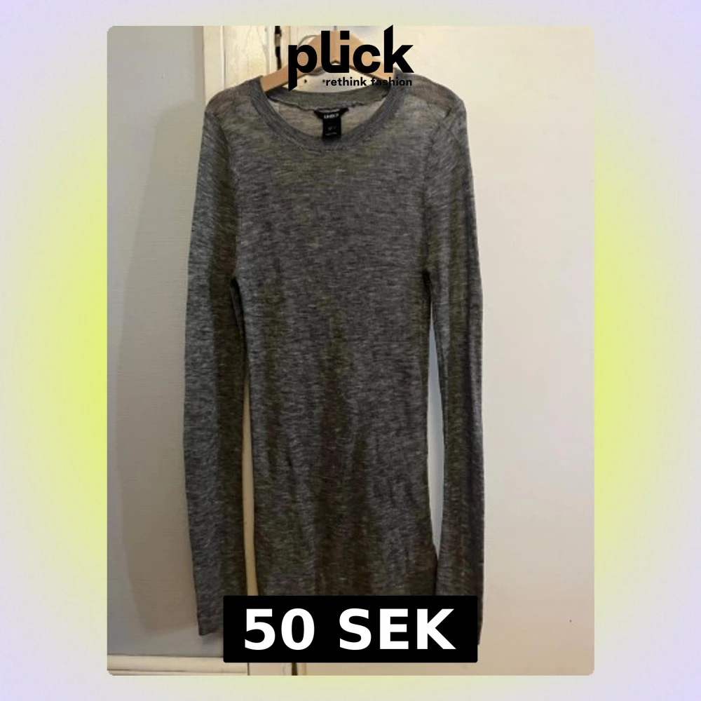 Säljer en enkel och stilren grå långärmad tröja från Lindex. Tröjan har rund halsringning och är gjord i mjukt, tunt material som sitter skönt mot kroppen. Perfekt att ha som basplagg och lätt att matcha med andra kläder.