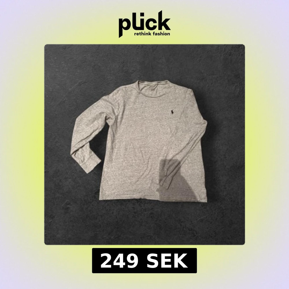 Säljer en stilren grå långärmad t shirt från Polo Ralph Lauren med klassisk rund hals och den ikoniska svarta loggan broderad på bröstet. Tröjan är i mjuk bomull och passar perfekt till jeans eller chinos.