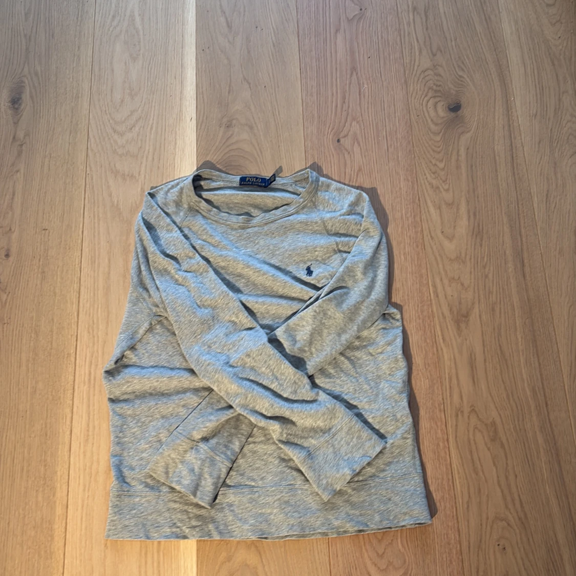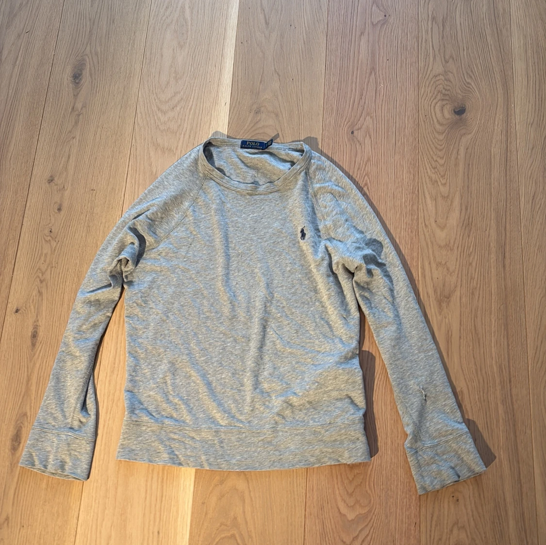 Säljer en stilren grå långärmad tröja från Polo Ralph Lauren. Tröjan är i mjukt bomullsmaterial och har en liten broderad logga på bröstet. Perfekt för en avslappnad look. Hör av dig vid intresse!