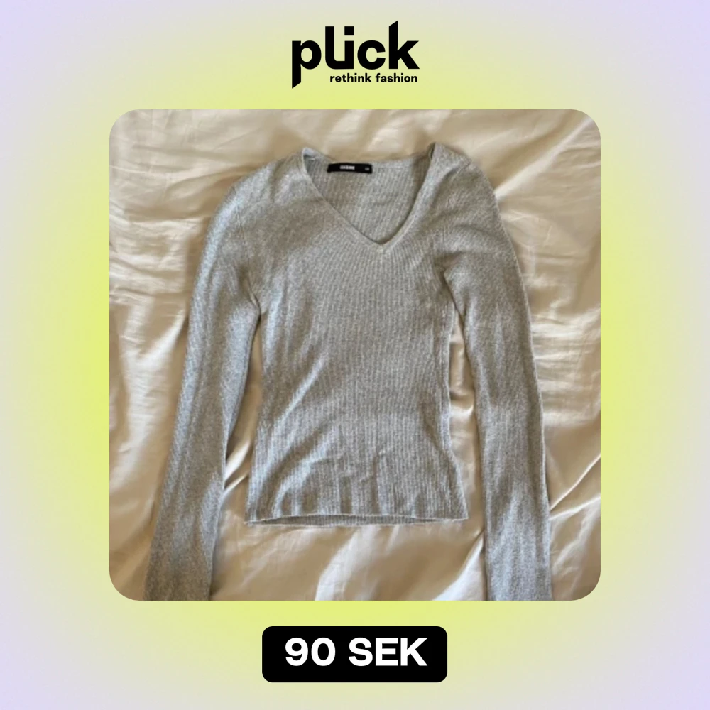En cool långärmad ribbad tröja, med en sne v ringning, storlek xs 💕💕