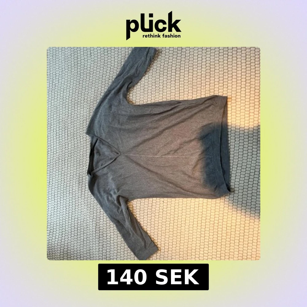 Säljer en stilren grå långärmad tröja med v-ringning. Perfekt för en avslappnad look. Tröjan har en normal passform och är tillverkad i ett mjukt material.