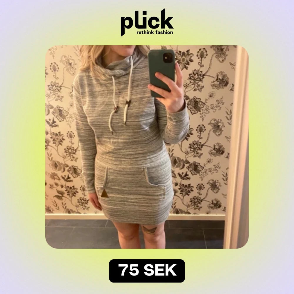 En långärmad grå vit tröja som jag fått utav mamma som bara inte kommer till användning längre. Har själv använt den mer som en klänning men de funkar att använda som båda.