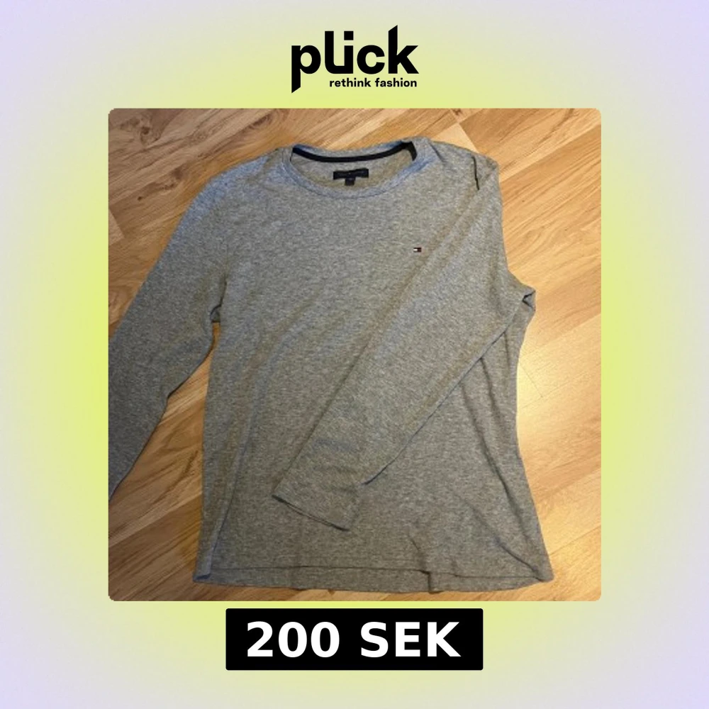 Säljer en stilren grå långärmad tröja från Tommy Hilfiger. Tröjan har ett diskret broderat logomärke på bröstet och är tillverkad i ett mjukt bomullsmaterial med lätt ribbad struktur. Perfekt för en clean och avslappnad look.