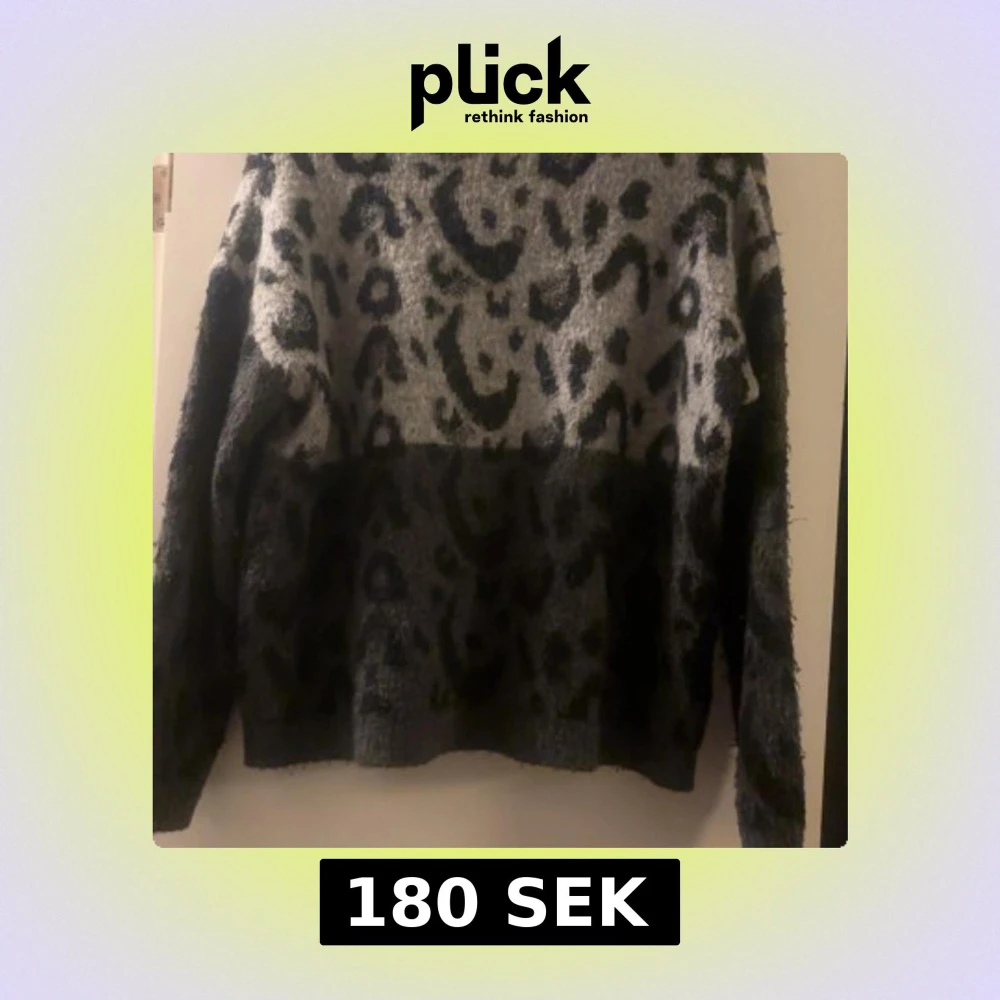 Säljer en stickad tröja från Mango i storlek S. Tröjan är grå med svart leopardmönster, har rund halsringning och långa ärmar. Perfekt för dig som gillar djurmönster och vill ha en mysig och trendig look.