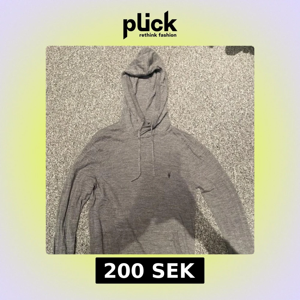 Säljer en stilren grå hoodie med huva och dragsnören. Perfekt för chill dagar eller när du vill ha en enkel och snygg look.