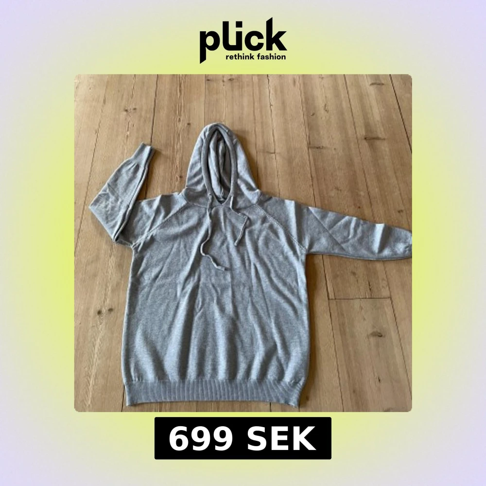Säljer en stilren grå merinoull hoodie med luva och dragsko. Tröjan har långa ärmar och ribbade muddar vid ärmslut och nederkant. Perfekt till jeans.