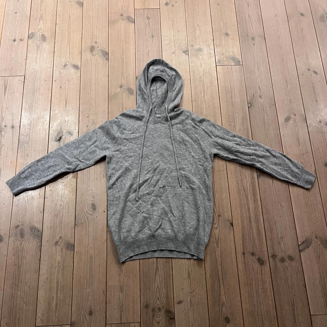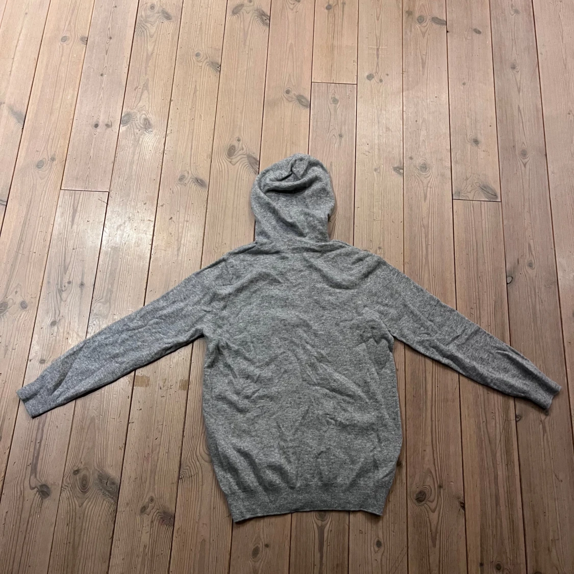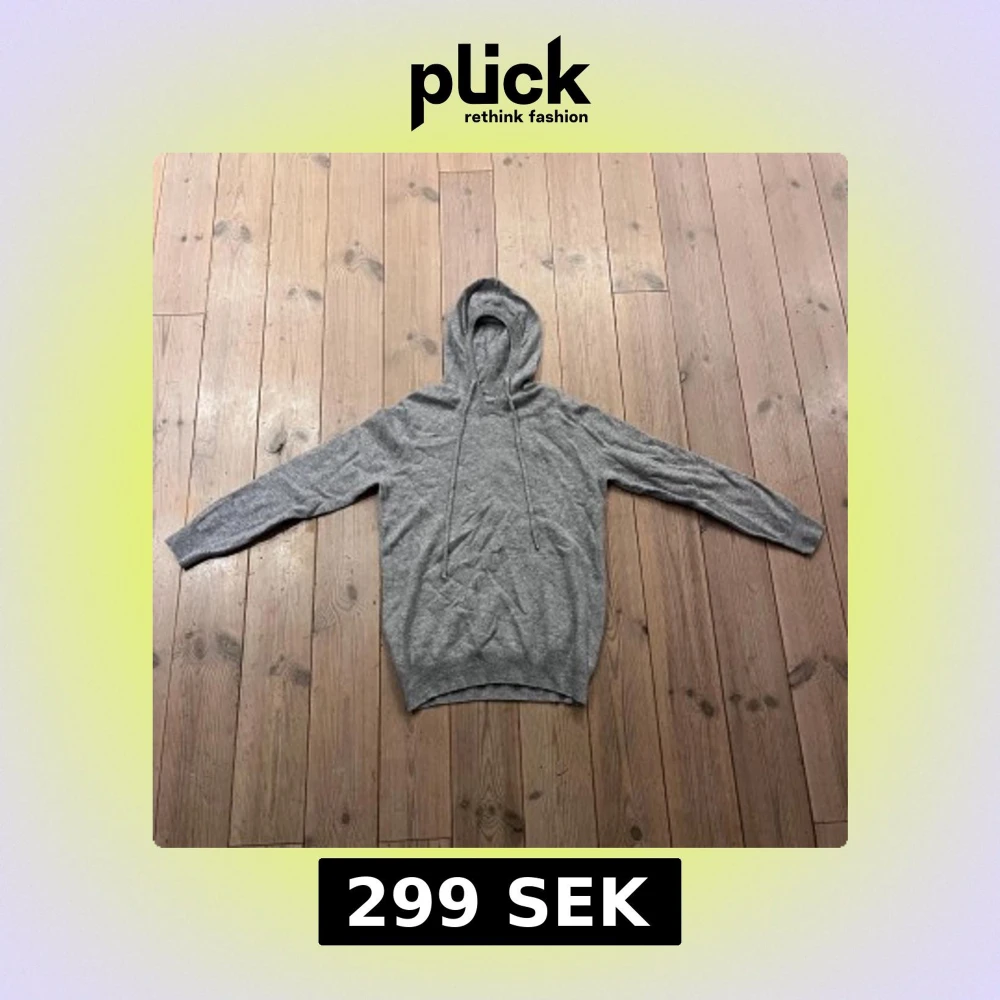 Säljer en stilren grå hoodie med långa ärmar och justerbar huva. Perfekt för en avslappnad look. Den har en klassisk passform och är gjord i ett mjukt material. OBS! ena metall grejen på högra sidan av tråden som används för att spänna luvan saknas.