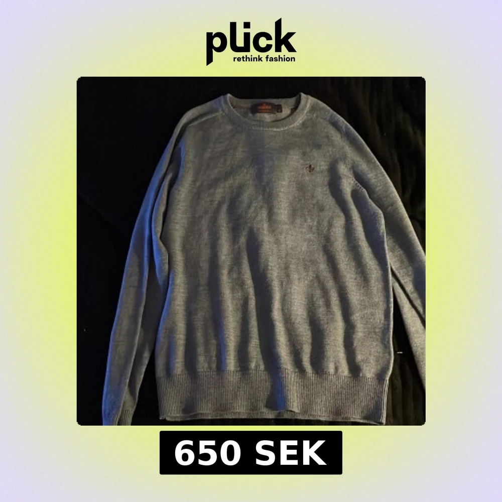Säljer en stilren grå tröja från Morris i 100% merinoull. Tröjan har rund halsringning, ribbade muddar och en liten broderad logga på bröstet. Perfekt för dig som gillar klassisk och enkel stil.