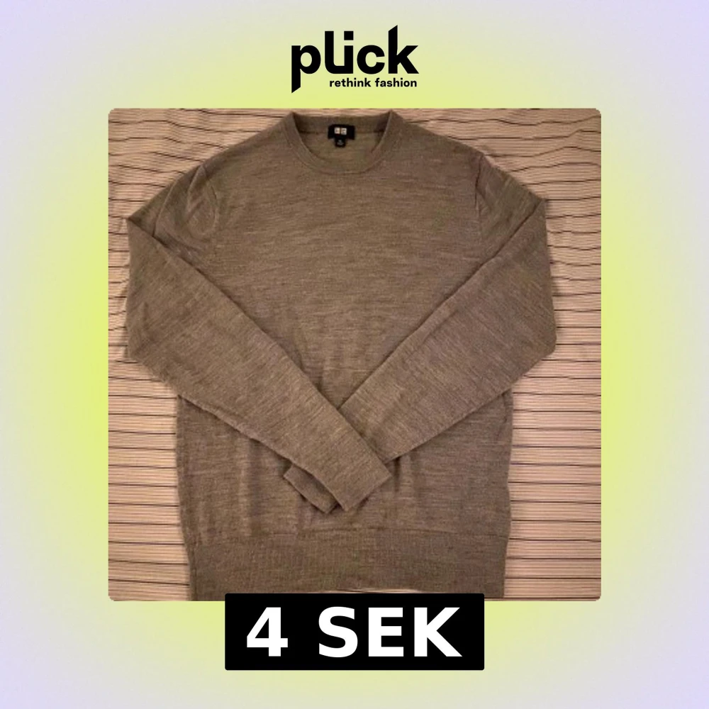 Säljer en stilren grå tröja från Uniqlo i mjuk merinoull. Klassisk rund halsringning och långärmad modell som passar perfekt till lager-på-lager. Enkel och clean look som funkar till det mesta. Endast använd 1 gång
