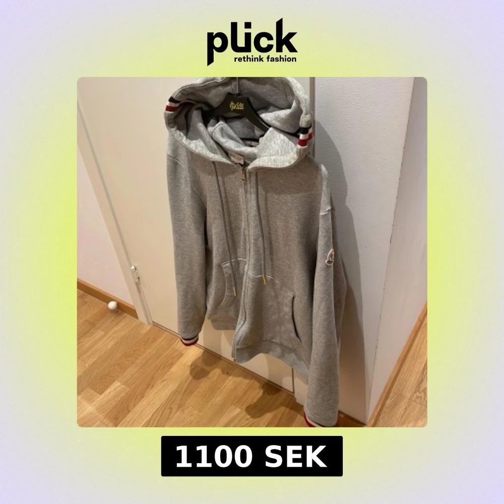 Grå hoodie från moncler storlek M passar s bra mycket bra skick
