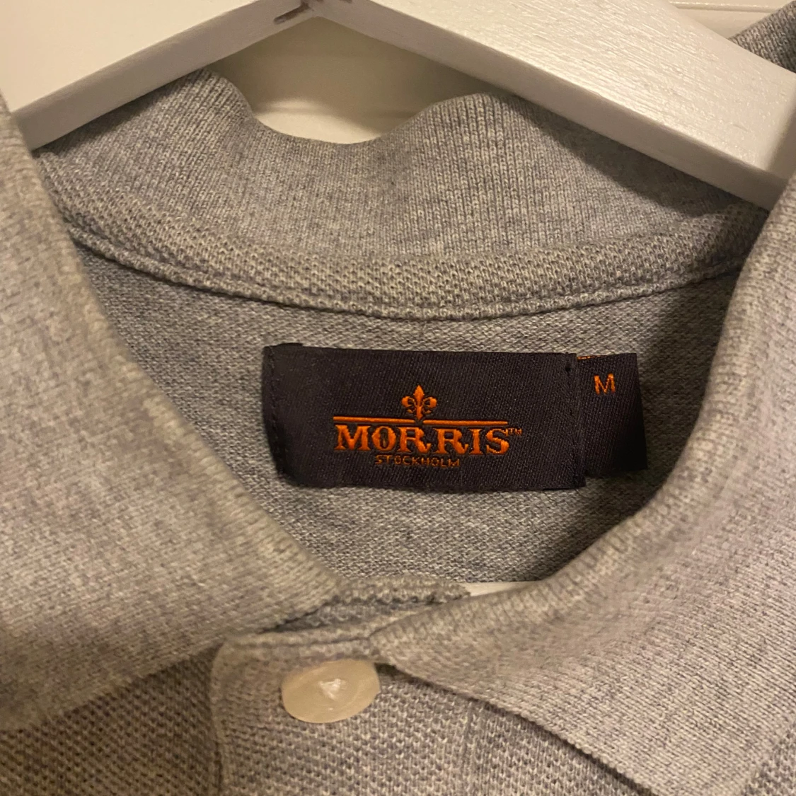 Snygg grå pikétröja från Morris med klassisk krage och två knappar framtill. Tröjan har korta ärmar och en liten broderad logga på bröstet. Perfekt för en stilren och avslappnad look. Den kar krymt lite i tvätten och är snarare storlek S